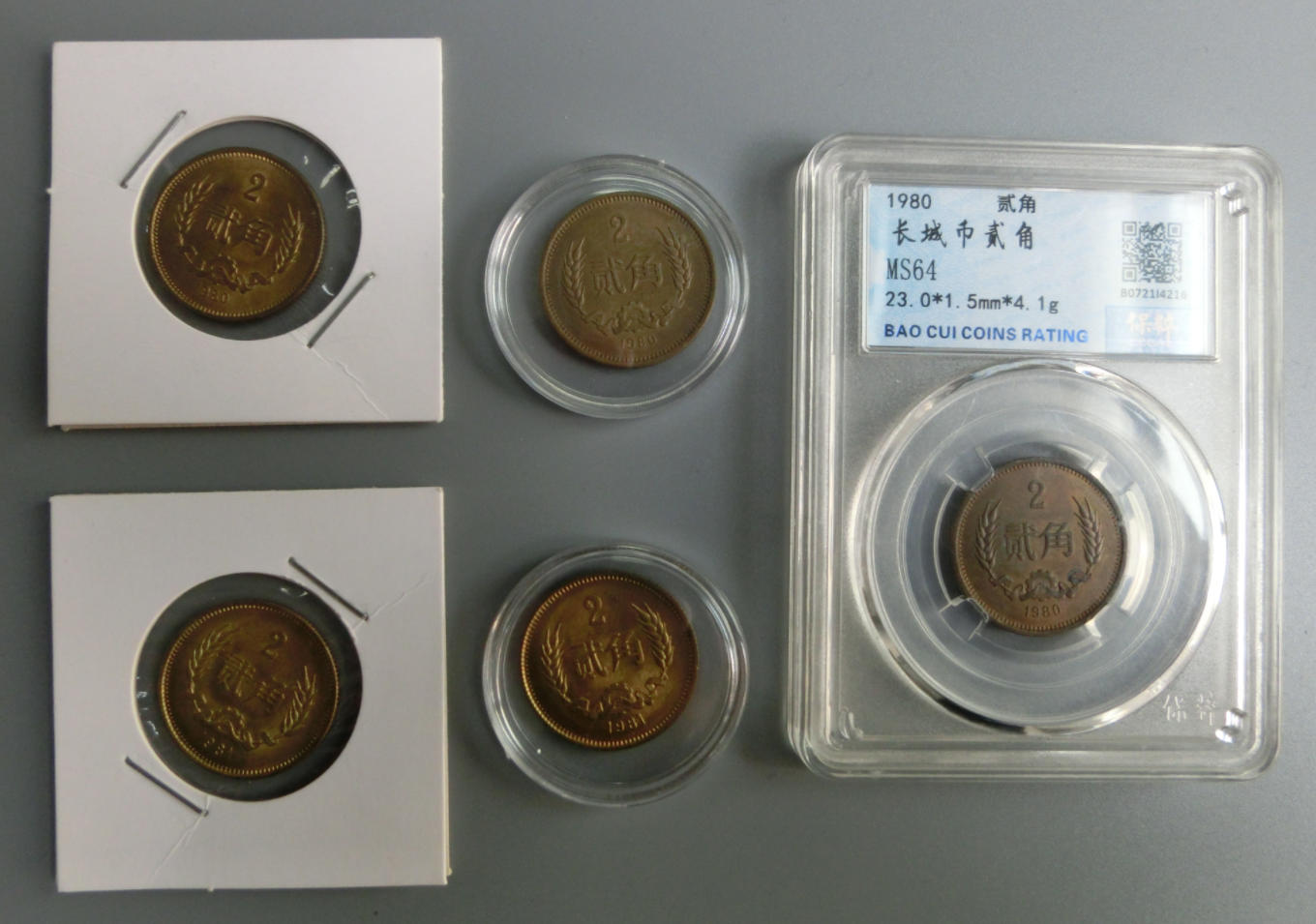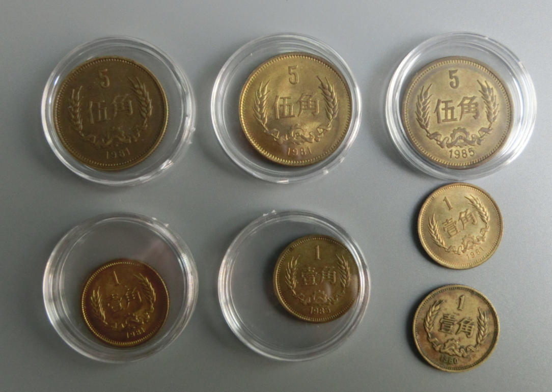 优惠低售80年、81年、85年长城币、1角、2角、5角长城币,81年85年长城币7枚,实价40元一枚,80年81年长城2角硬币5枚,实价130元一枚,80年81年85年1角5角硬币7枚,实价130元,以上不单出,通走实价1050元,品质保证。