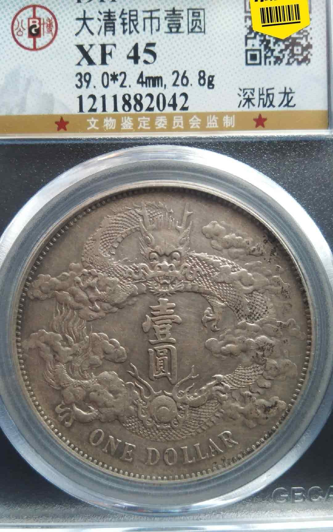 原汁原味,全龙鳞全字口,细节清晰,底板好,状态不亚于PC同分40-45分大清,实价5880元!