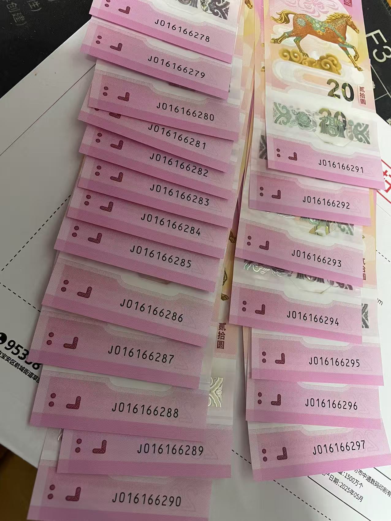 马钞朦胧 尾88,20连张