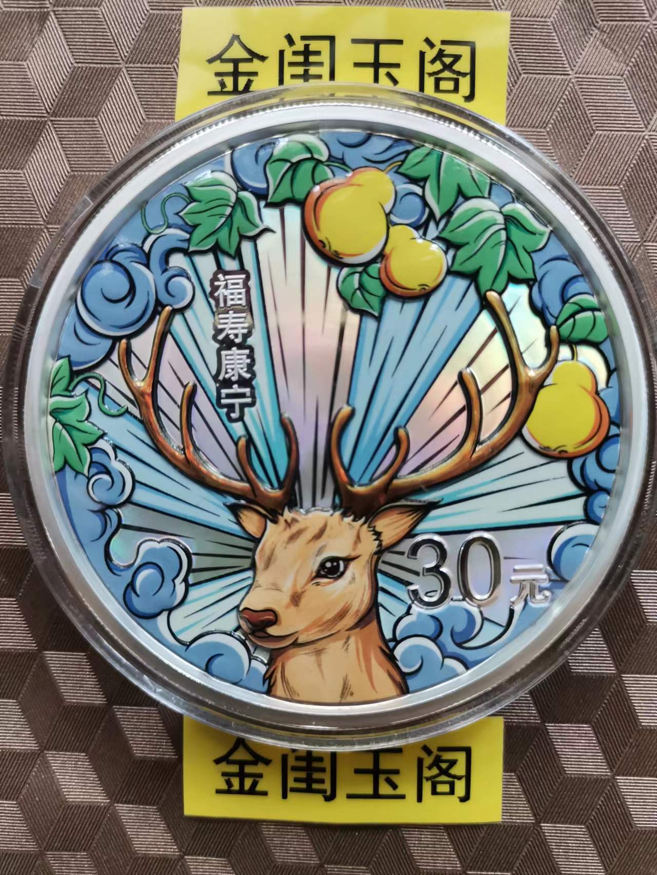 确认一枚,福寿康宁,礼盒证书6488,礼盒证书完好,币面完好