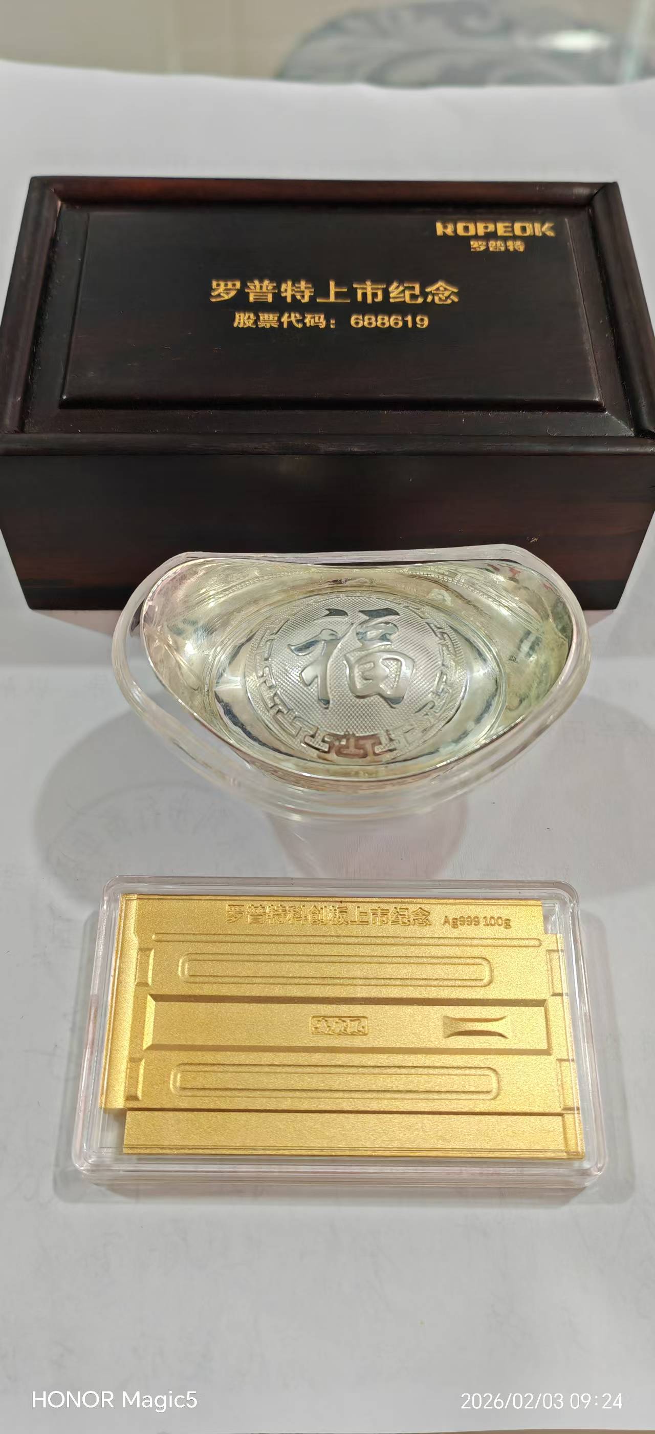 23.2出上市公司100克纪念银条1根50克银元宝1个