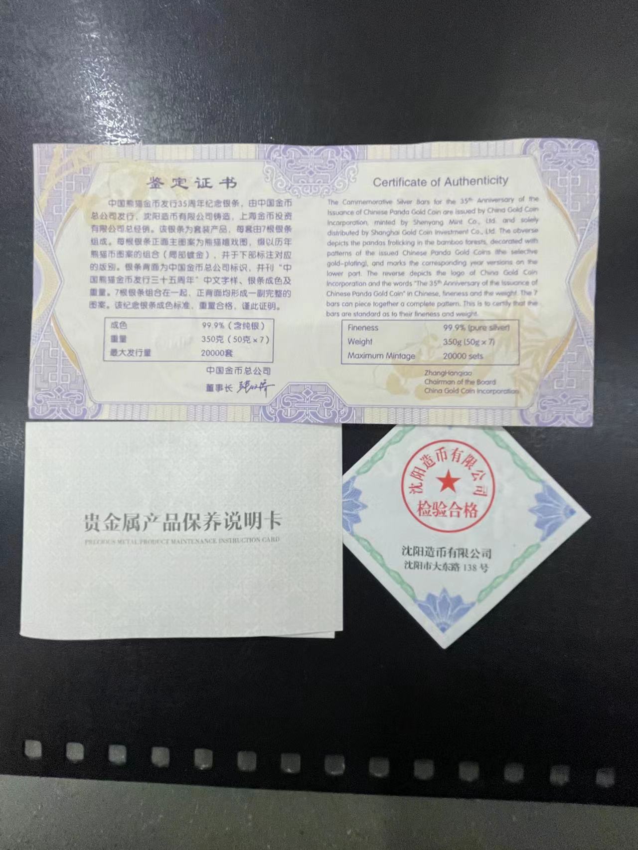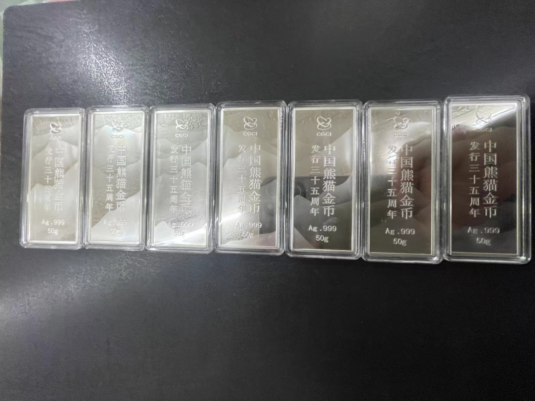 熊猫金币发行35周年银条.一套7根*50.合350克.27/克.原装盒证齐全.三包顺丰.确认为准