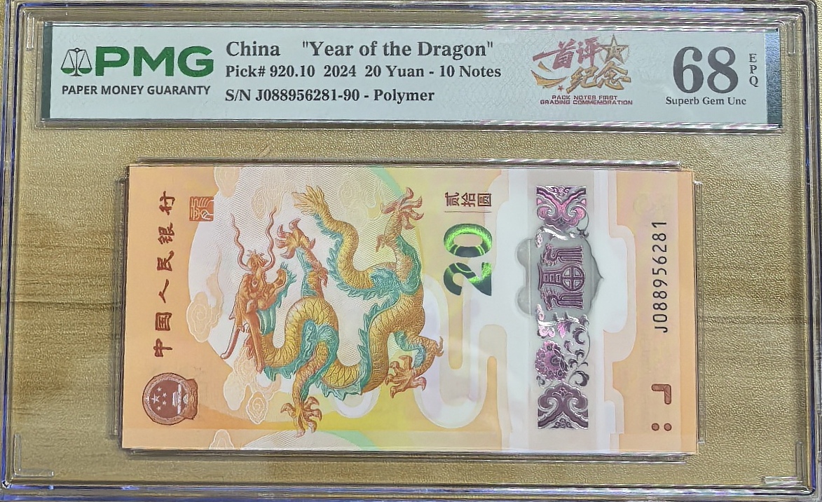 → 出小龙钞满号088头尾88如意号标10 Pmg评级68分