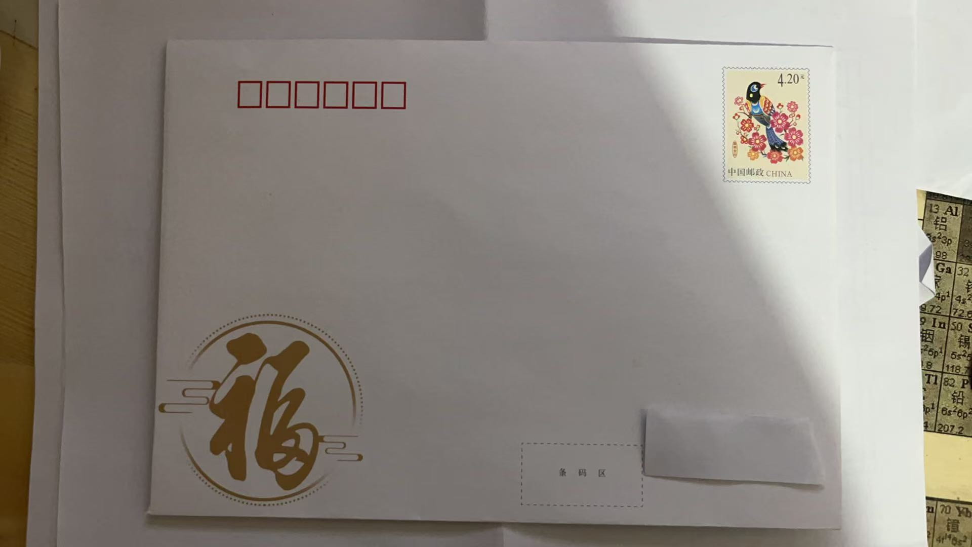 刚买的4.2元喜鹊登枝邮资封,存疑。请版主和友友们帮忙鉴别。