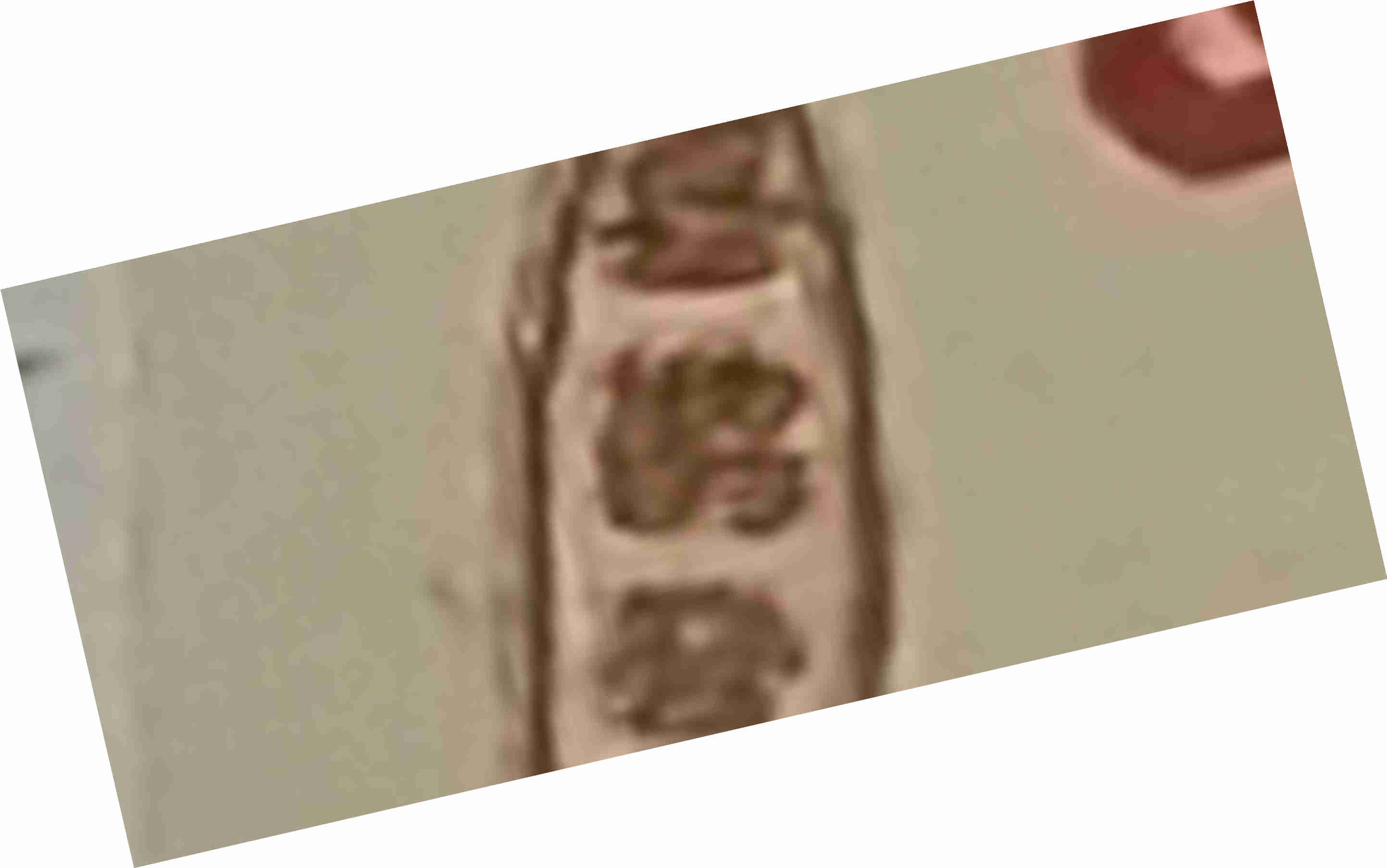 图二,邮资图印章放大10倍。印章模糊不清。