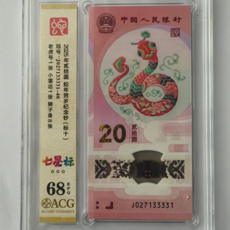 → 蛇钞 标十 爱藏评分68 老虎尾 33333 售价0.5w。