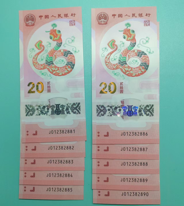 ***蛇钞012382888标10一组***