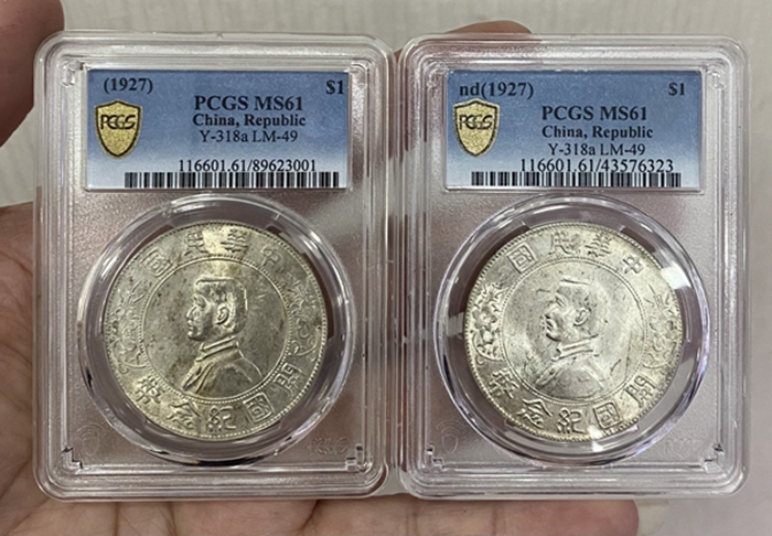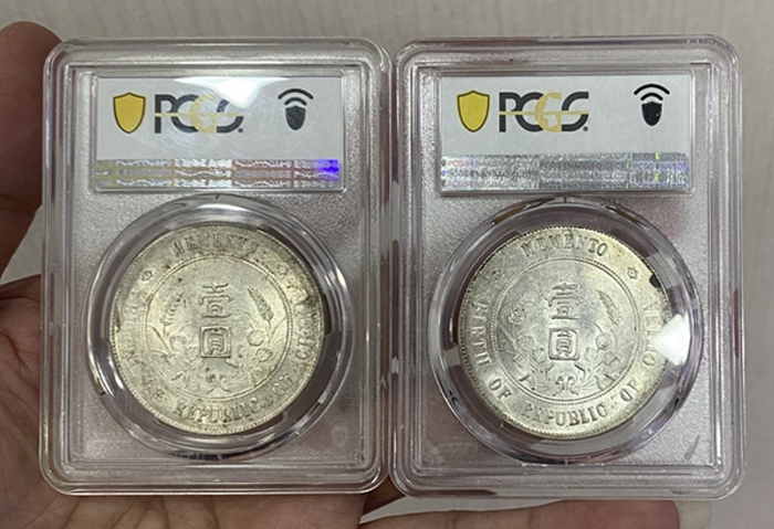 → ▉▊▋PCGS MS61 原光 小头开国纪念币 2枚 ▉▊▋