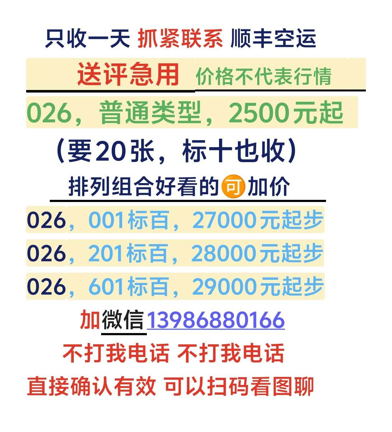 【只收一天026】026组合单张026标十026标百