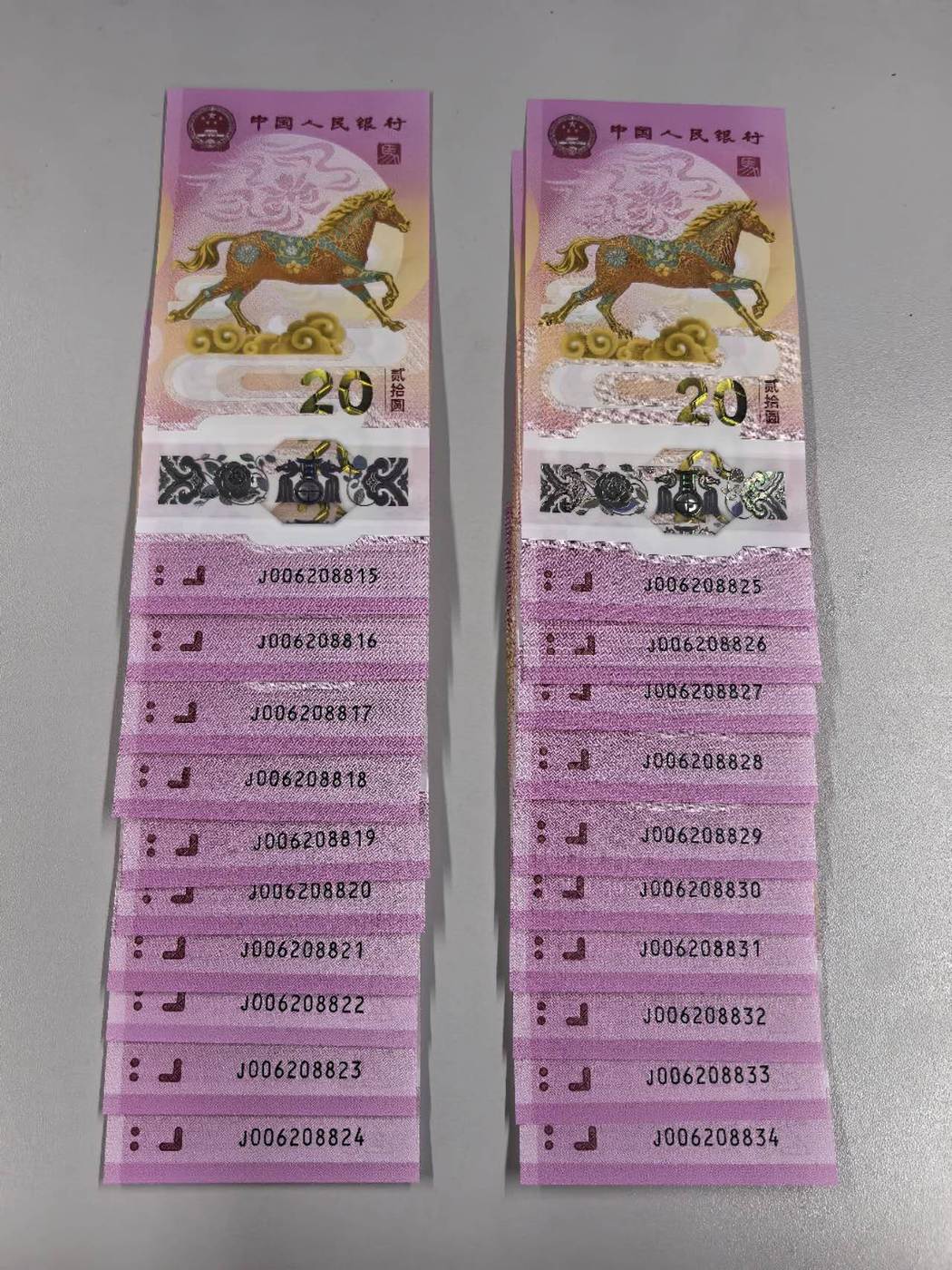 马钞全偶20连号,006208815-006208834,