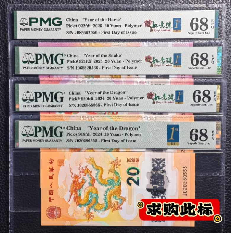 一、13520元/张求购龙钞如意金兰918(PMG68分)10张