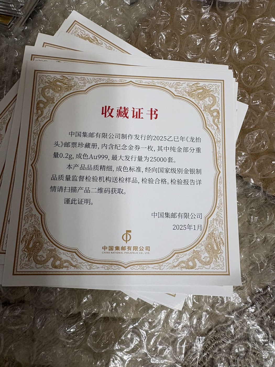 大盘金价出10张0.2克的2025蛇年龙抬头邮票金
