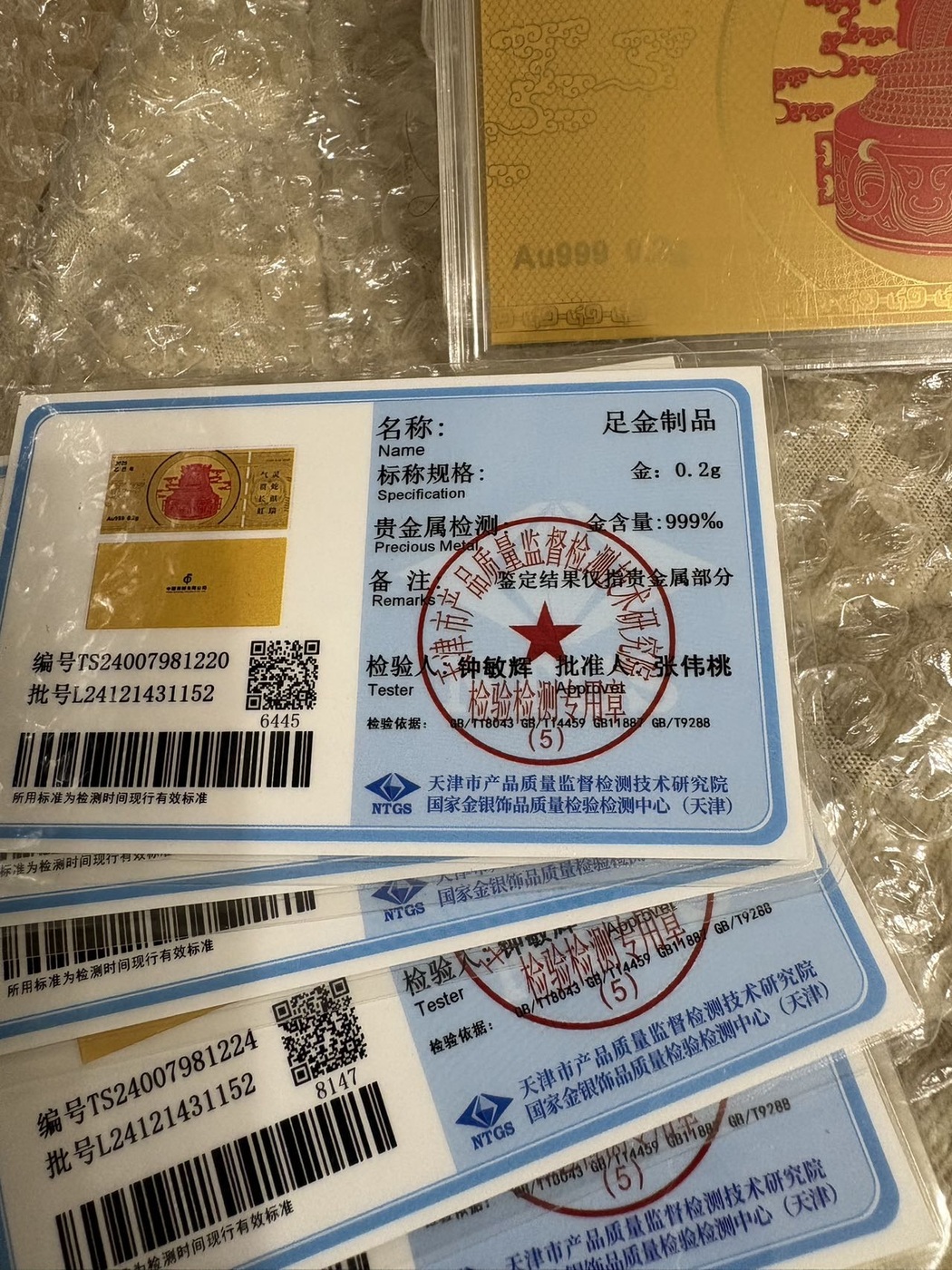 10张*0.2、共计两克金、按大盘金价出。包邮到家