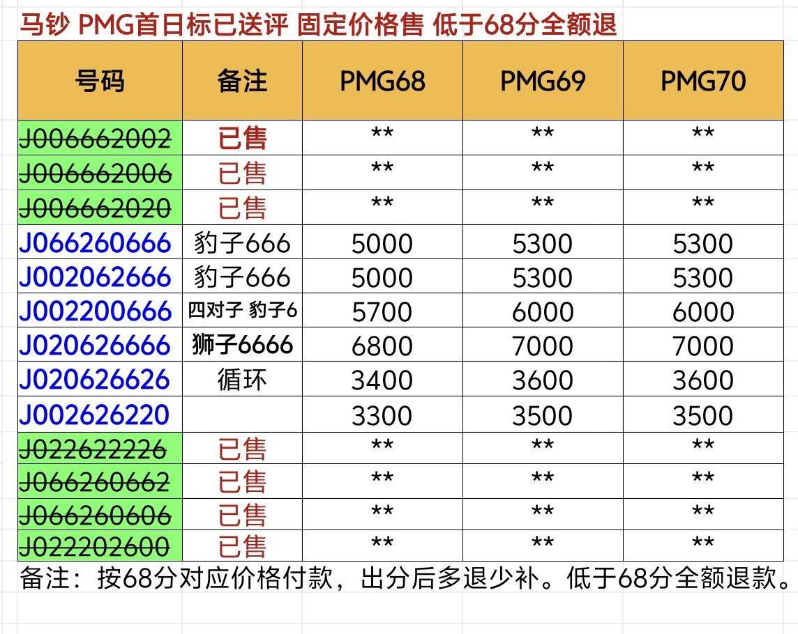 → 【售PMG68首日标马钞026】026精品 含6666