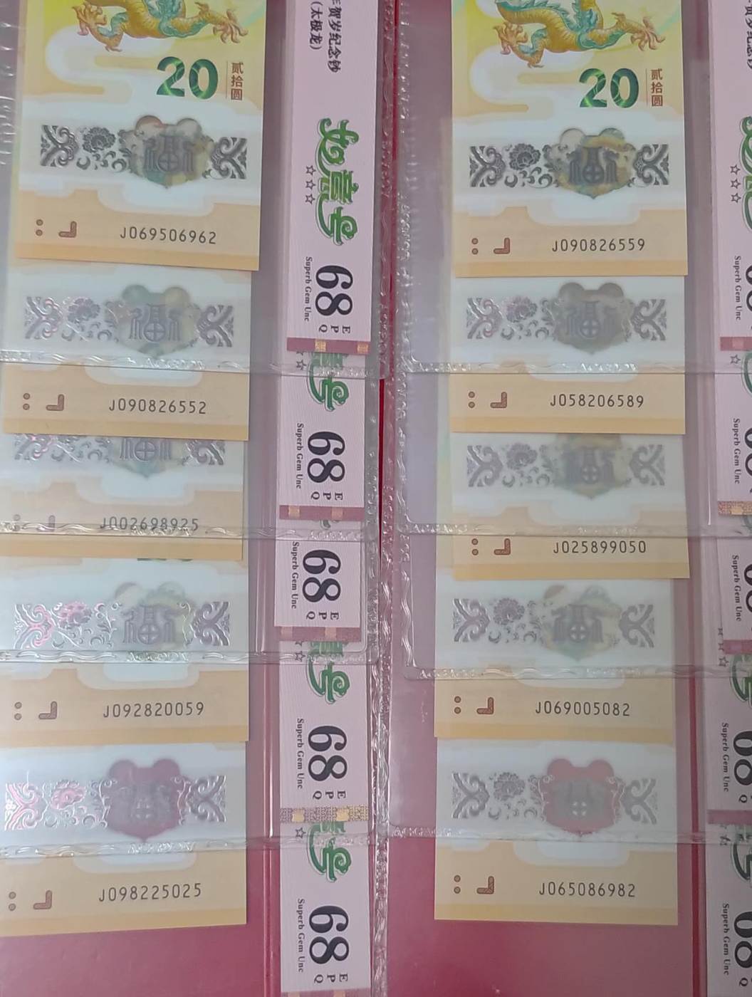 480出无347如意号爱藏68分小龙钞20张,号码见图,包品包顺丰