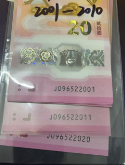 出如意钻石20连号。马钞年份号2001-2020 20连号售2980元 可找老会员担保