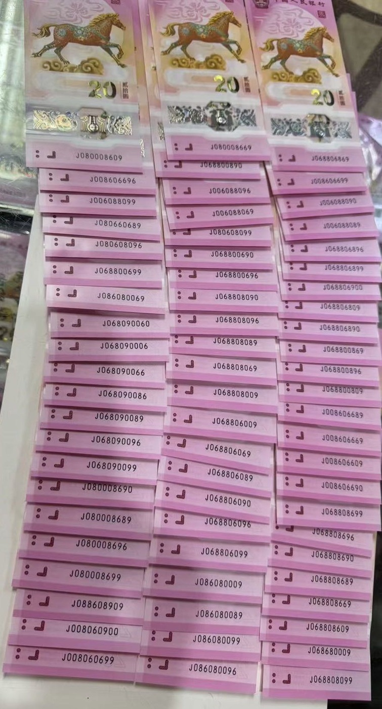 出马钞圆圆号64张,图中有3张不在了,售1100元每张通走