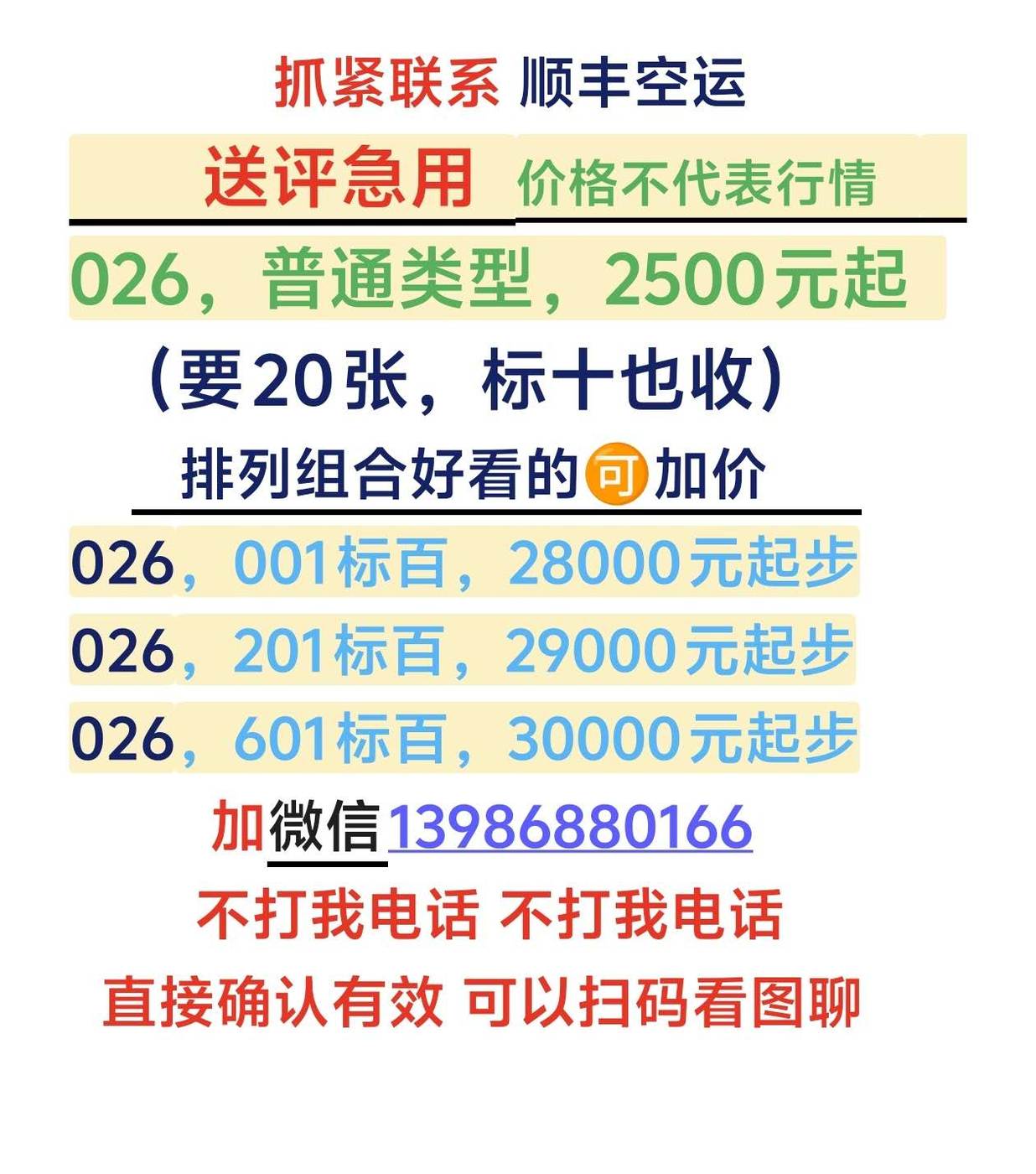 本人只发顺丰快递,买家收货务必当面(交易额超过2万元的请在顺丰点部监控下或视*频)验货后方可签收,一经签收默认货品无问题,售出概不退换!