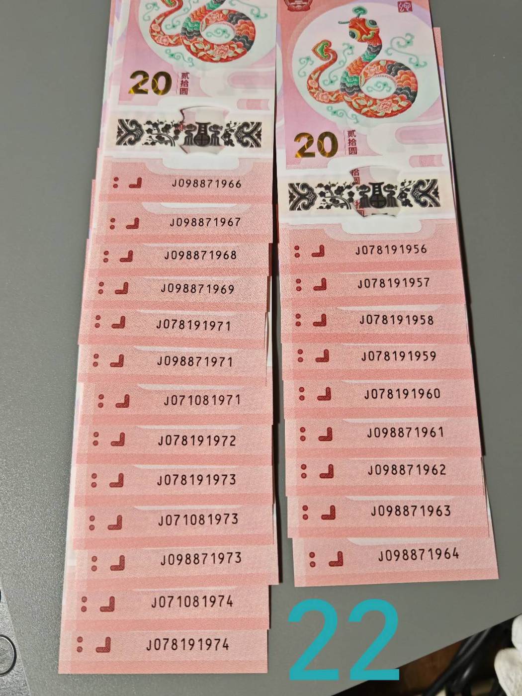 → 蛇钞,年份号,金钩号段