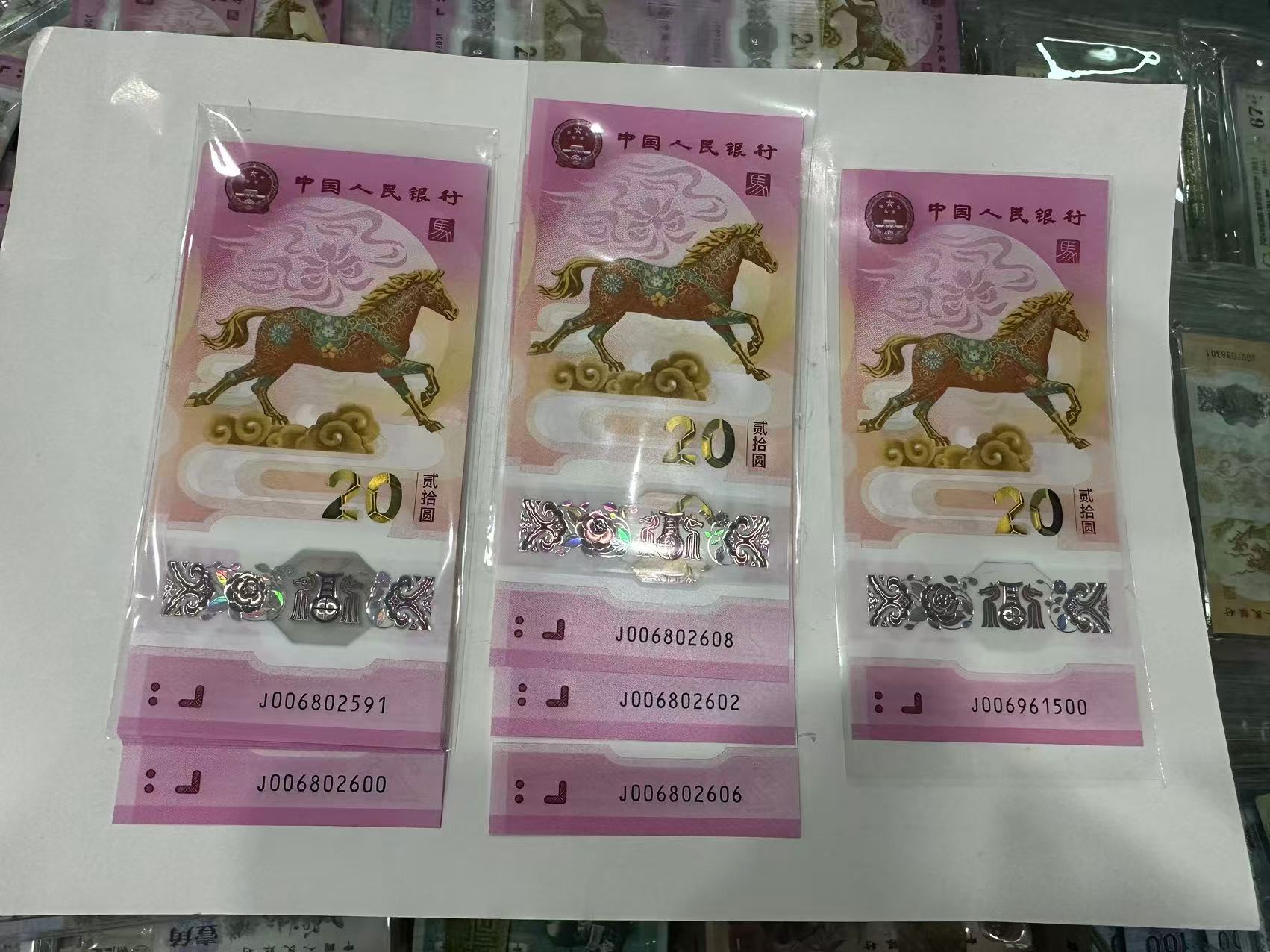 马钞0268单张3张、标十1组、金马1张