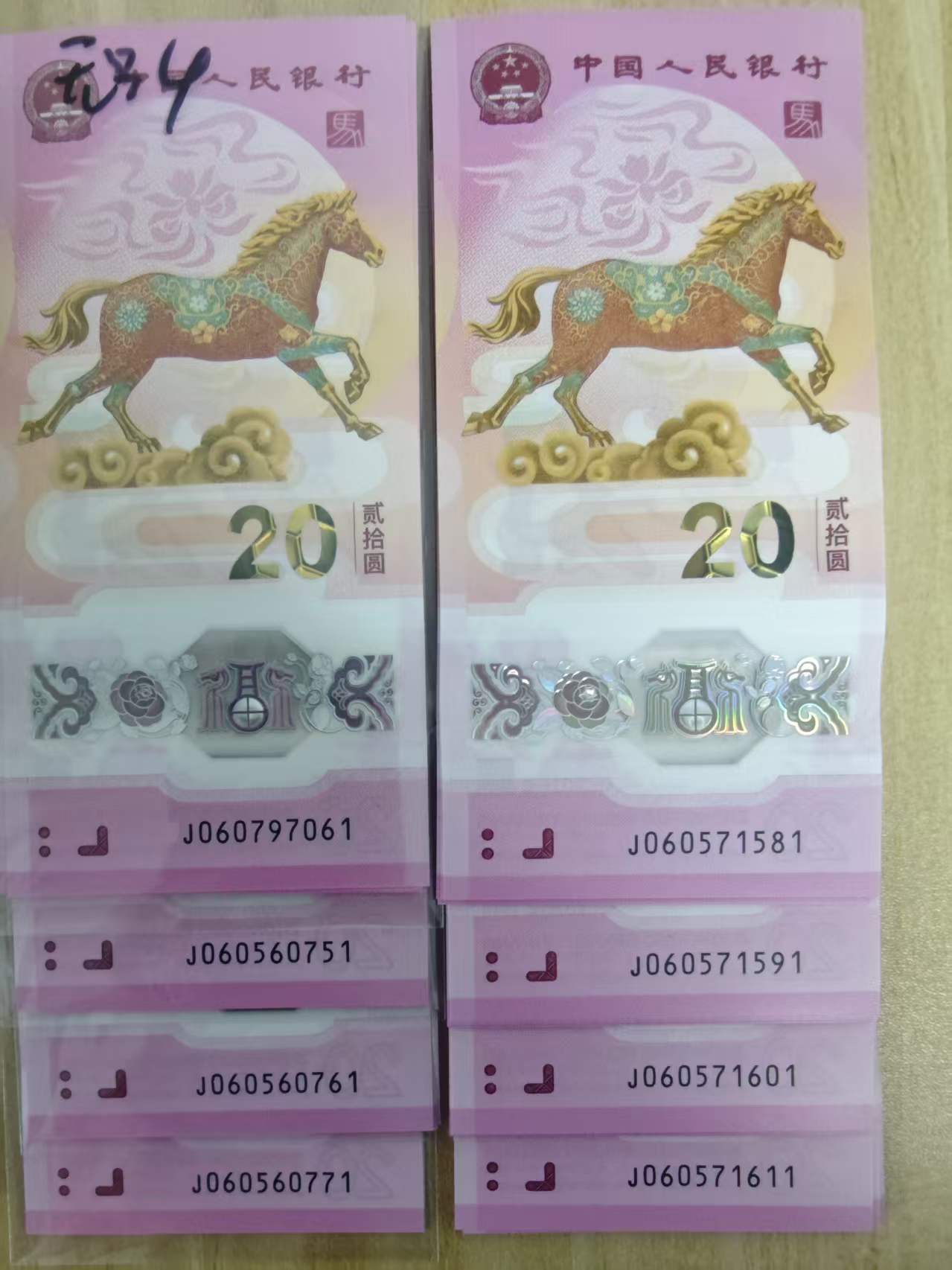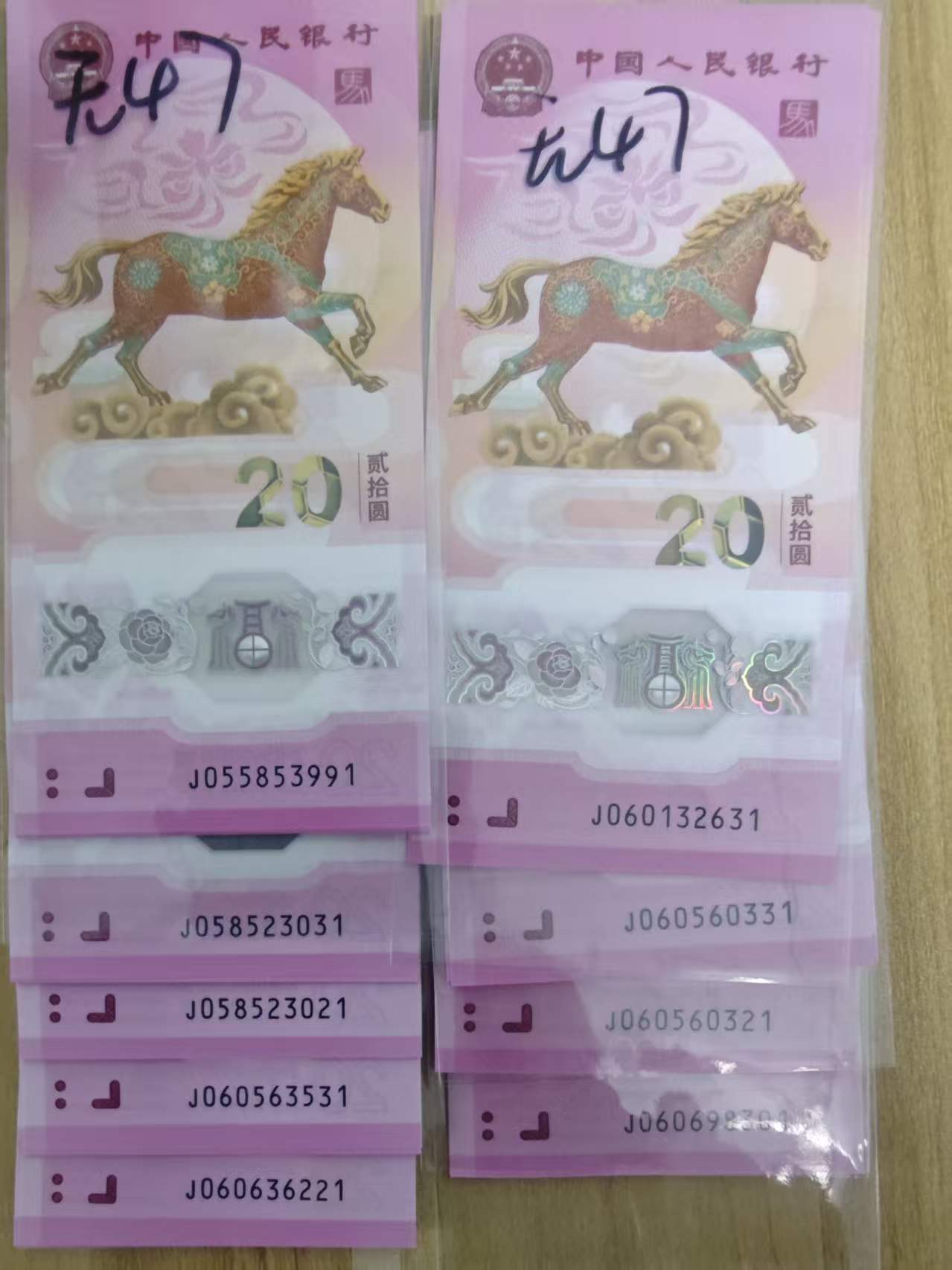 无34散钞 13张 32一张 无47散钞 24张 36一张无4标十 4组 330一组 无34标十 1组 340一组 无234标十 8组 360一组 无47标十 9组 380一组 朦胧标十2组 900一组金钩王标百 5000