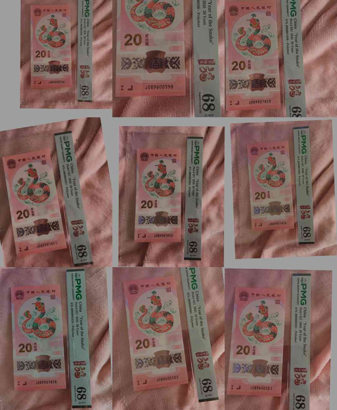 450一张通走出蛇钞pmg68单张卖到17号停
