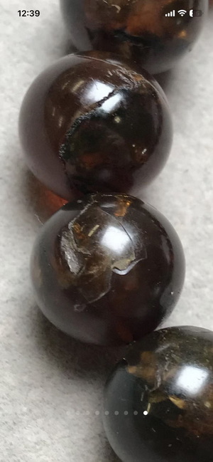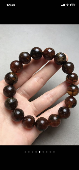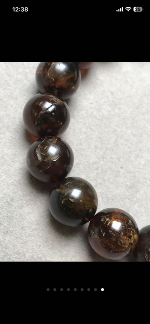琥珀手串,包裹体清晰,有纹裂磕碰,款式:手串;长(mm):12.9-13.3;重量(g):21.4,9元克价180出,上手还是很漂亮。