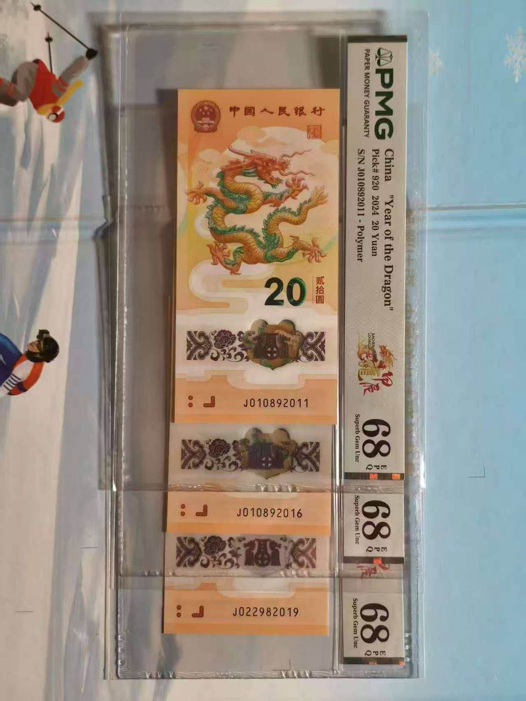 → 出3张小龙钞朦胧号,年份尾,2011.2016.2019.PMG68分