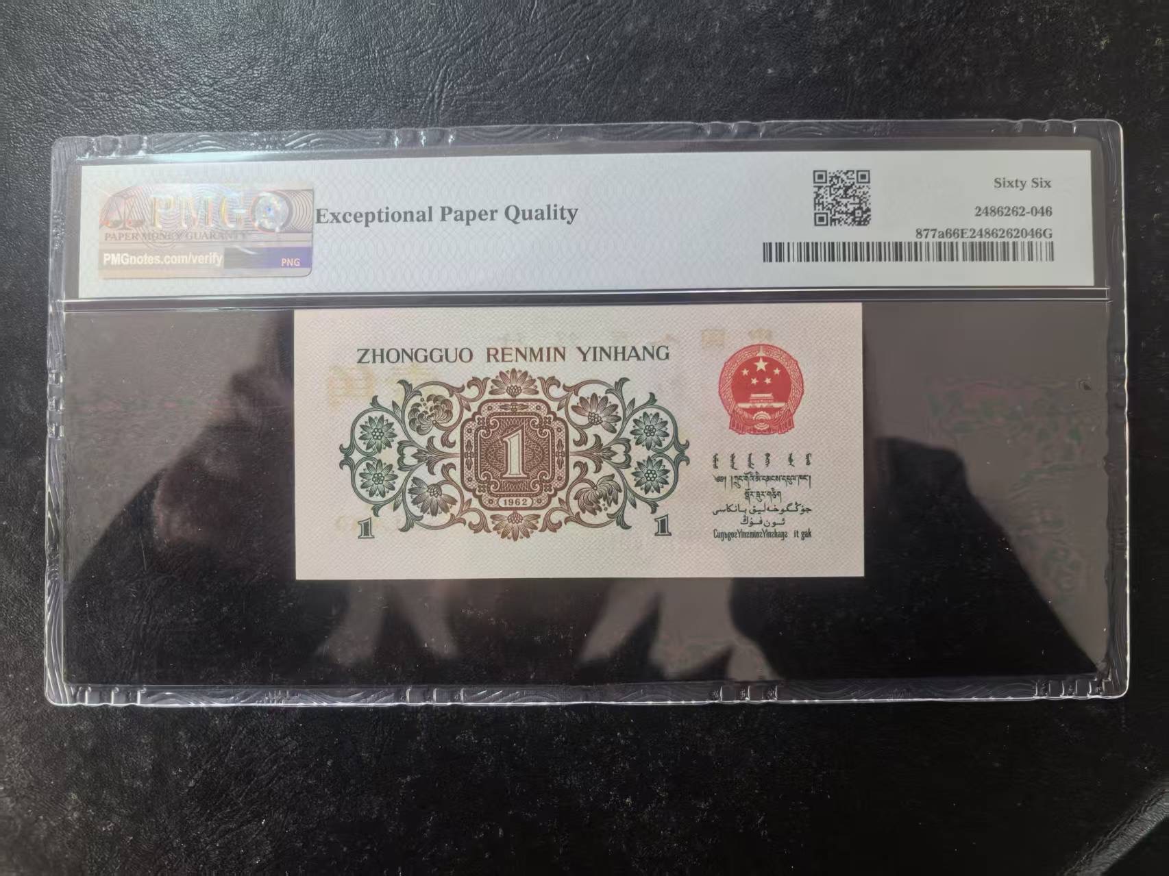 三版背绿1角美评PMG66E,全新直版原票,对光无黑线,票面干净,售价2900包顺丰