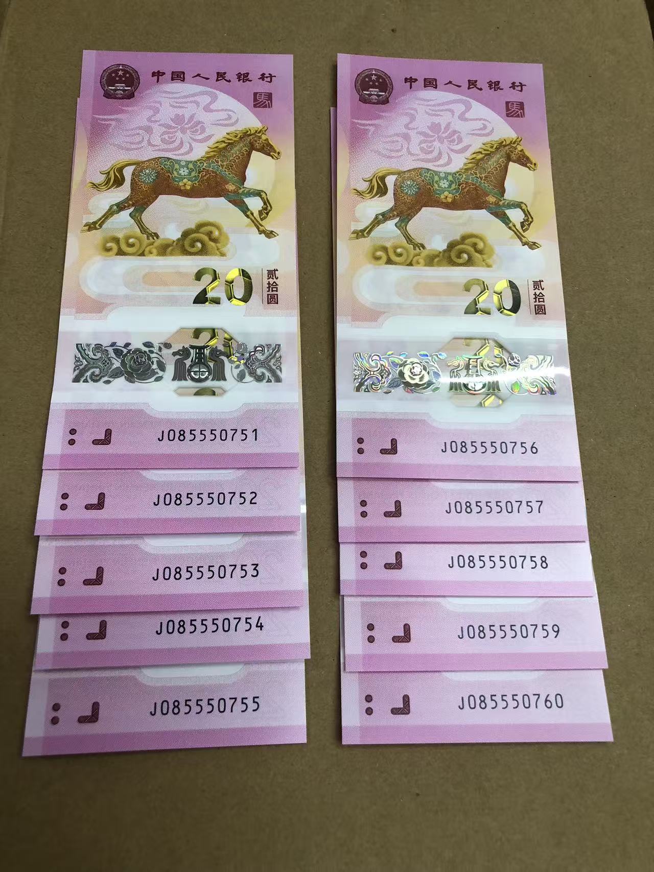 马钞飞马王标十,中间带555豹子号,带1张085550755万马奔腾,680元