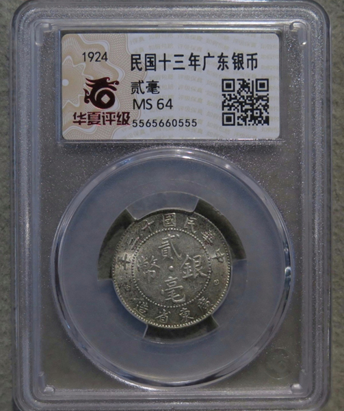 → (华夏评级MS64)广东省民国十三年贰毫银币