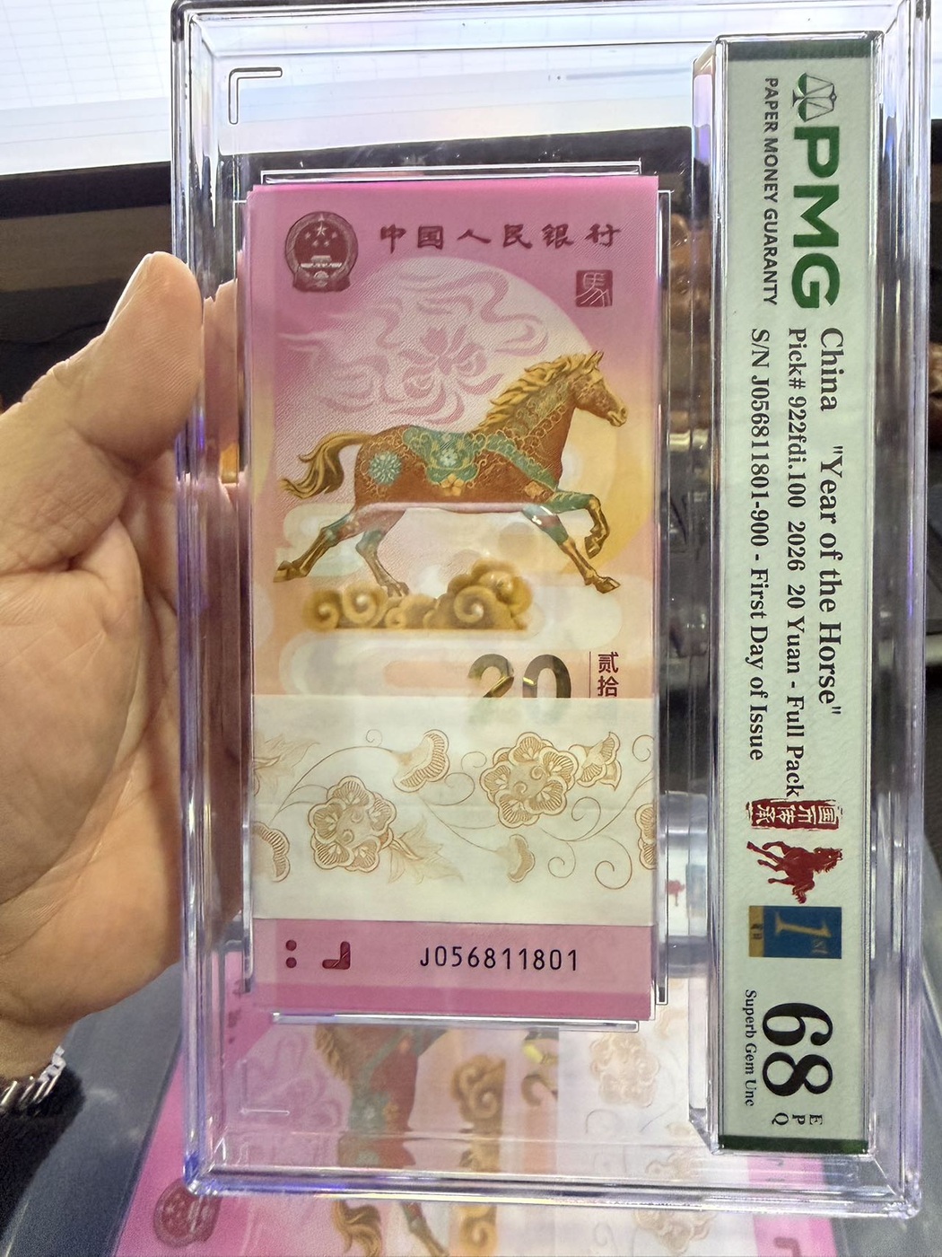 → 出一刀PMG68分首日标满号0568头尾801金马车,满号