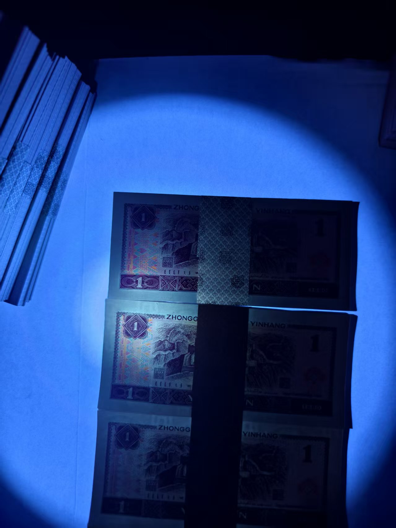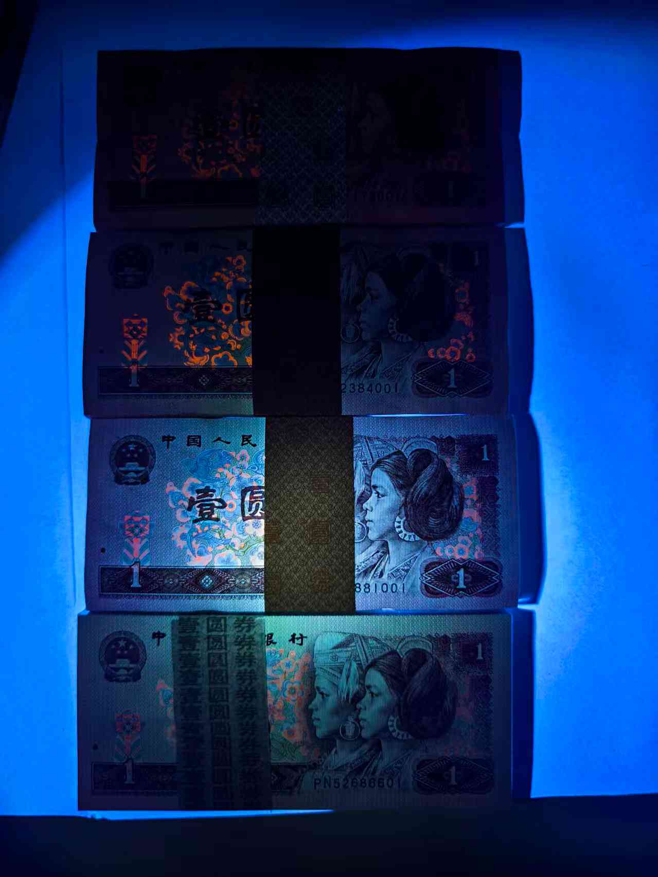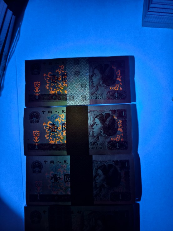 901纸币荧光之王,仅存在901纸币两个冠号中的部分流水号里,观赏性和收藏价值极高!