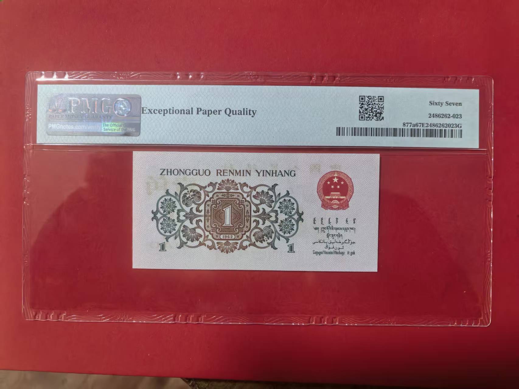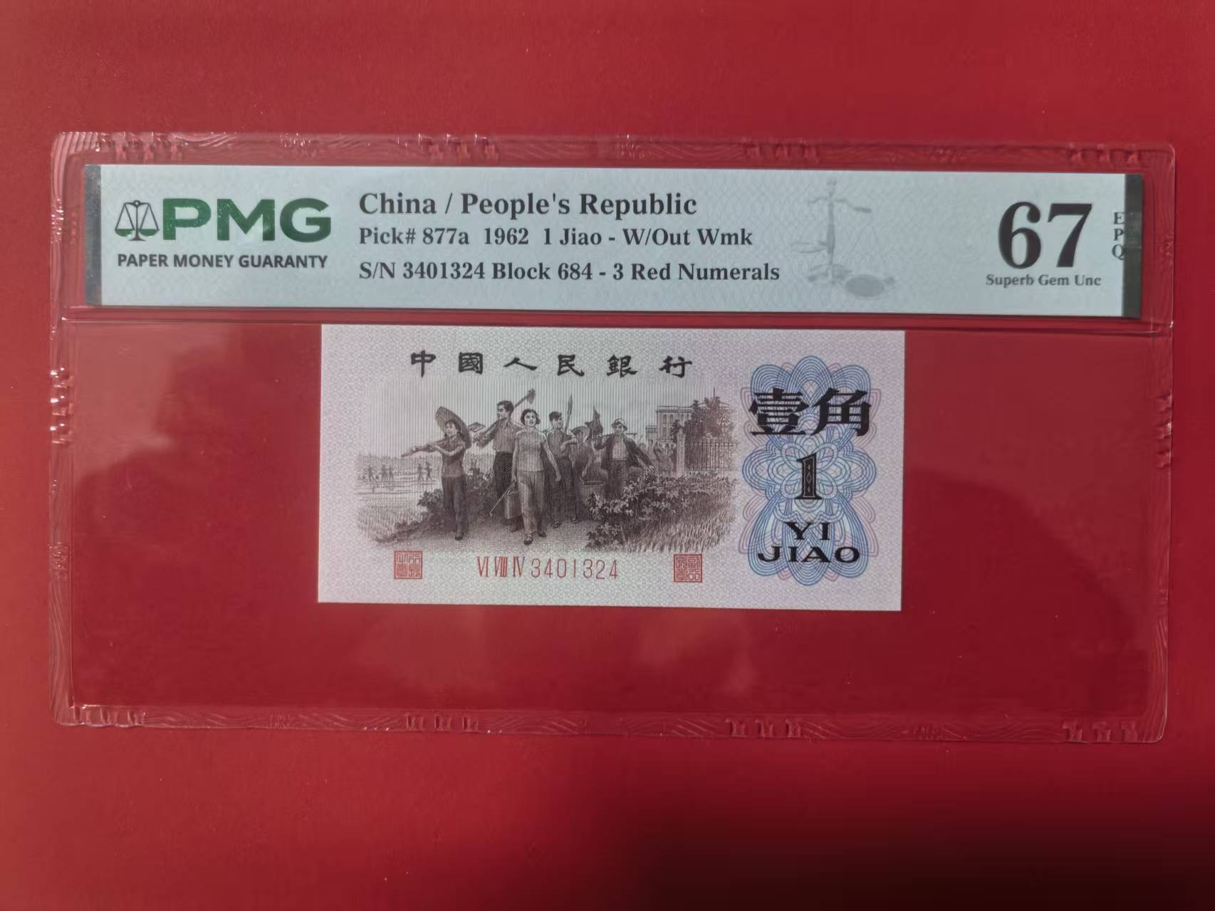 三版背绿1角美评PMG67E高分全小号,全新直版原票,四角尖尖,状态优秀,售价3280包顺丰