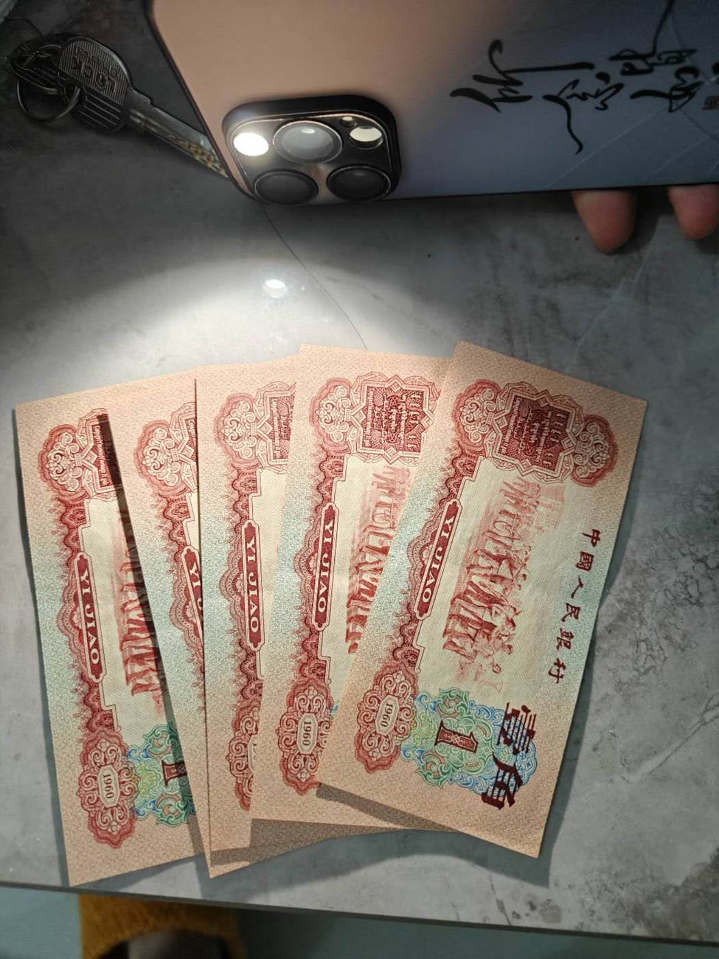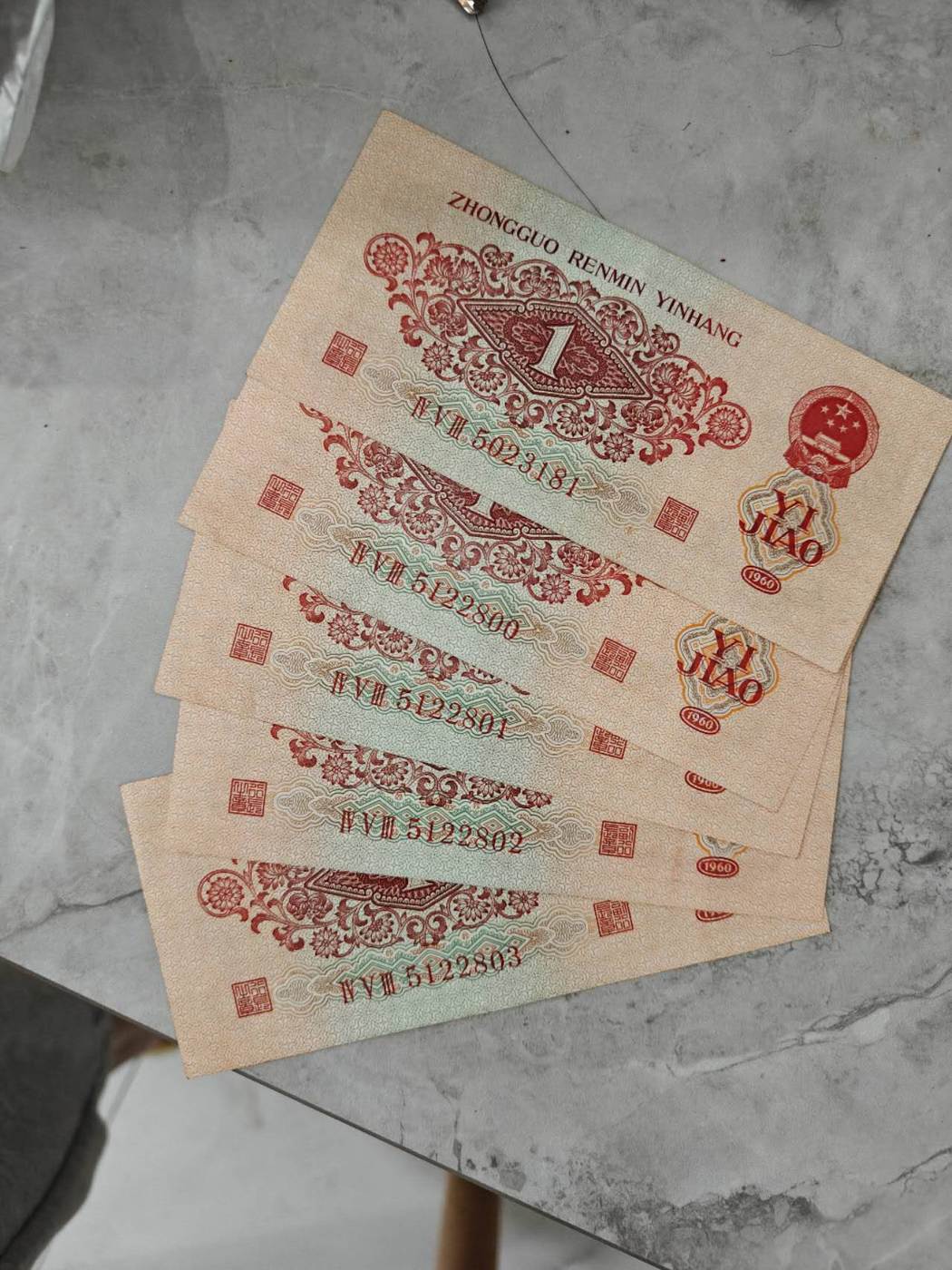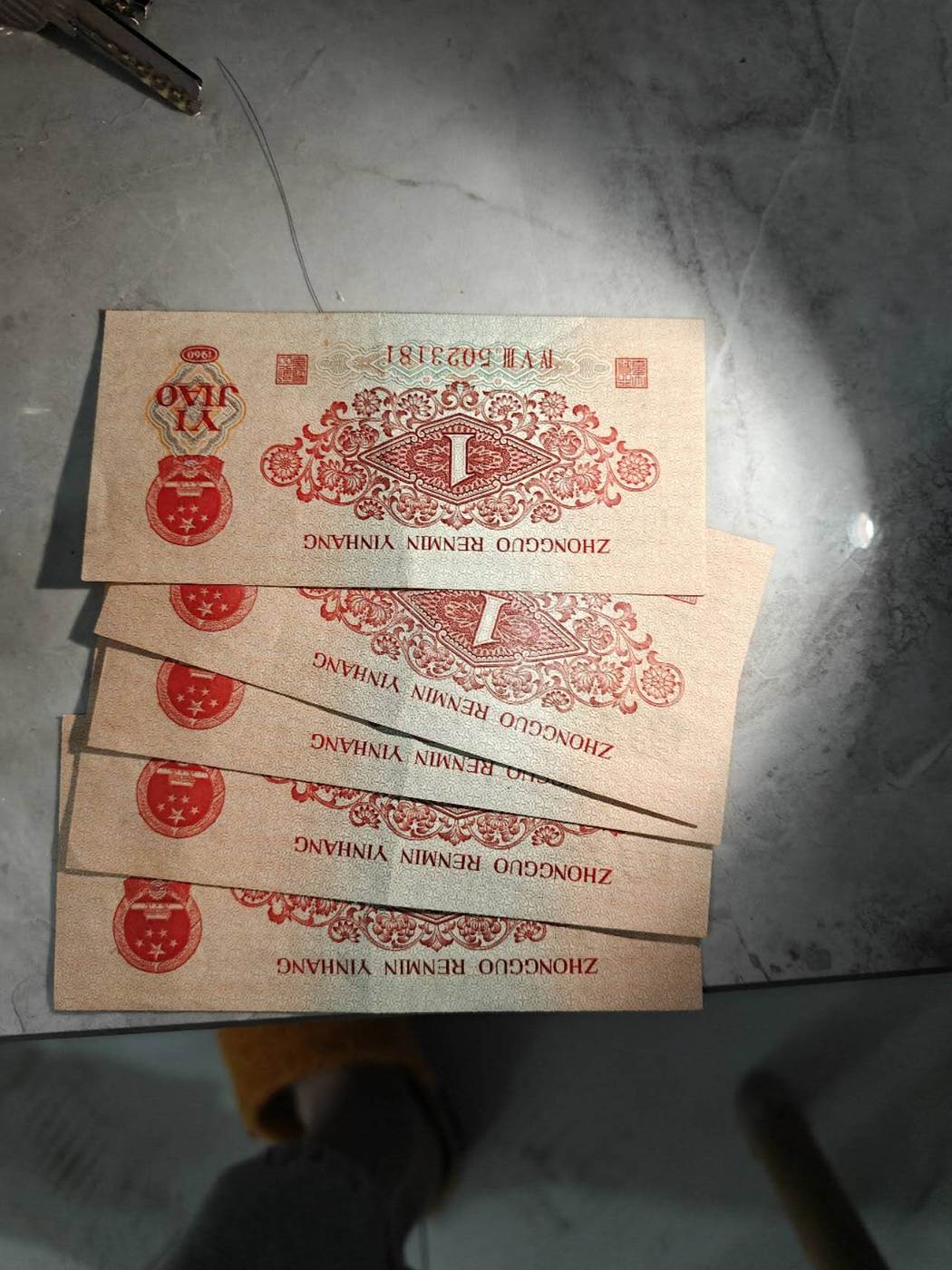 枣红五张 四张连号加一散张