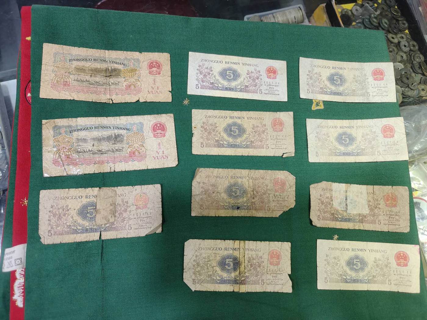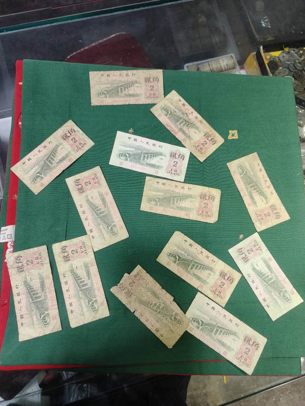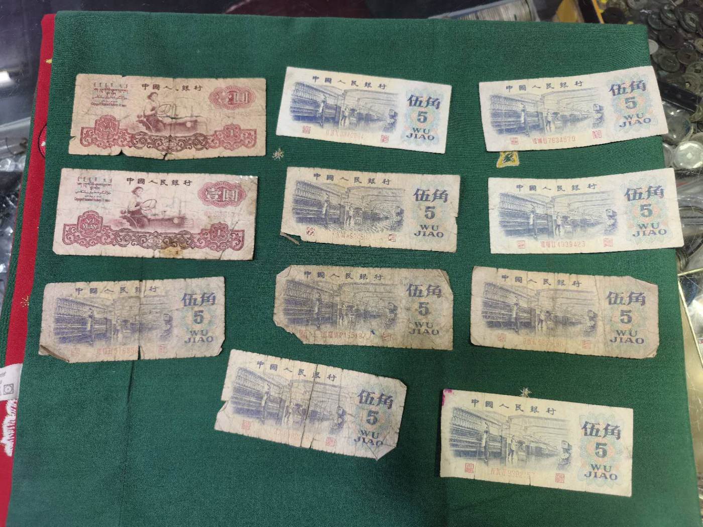 → 三版旧票一堆(2张1元、9张纺织、19张大桥、24张工农1角)…………合售68元