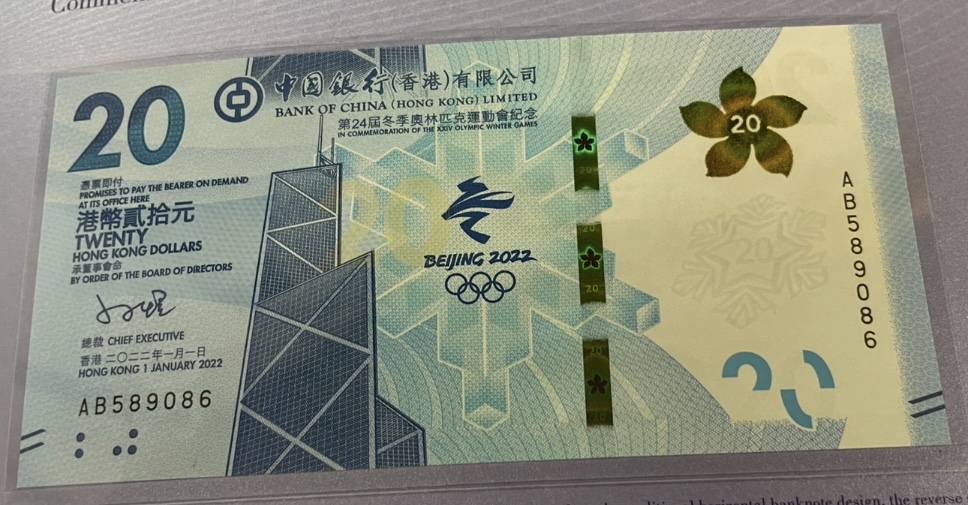 2022年冬奧會20元香港纪念钞: