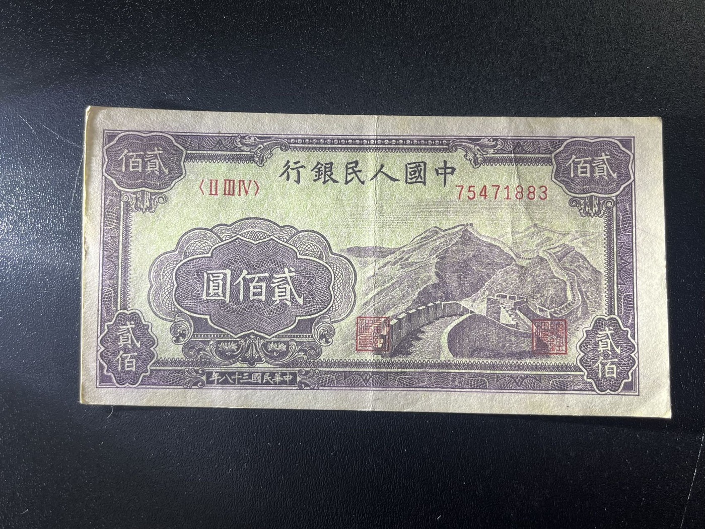 一版200长城一枚,原票原汁原味,惠售1888元包邮,联系确认18800292096