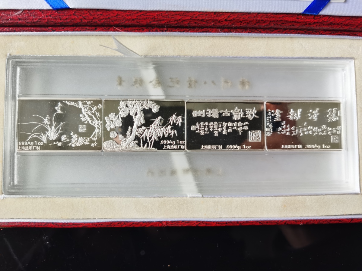 一套四枚银砖,单枚一盎司