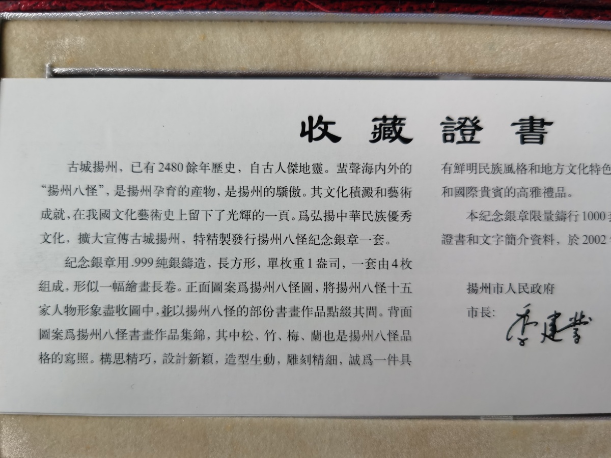 → 回流——扬州八怪精制纯银纪念章一套(四枚,单枚一盎司)