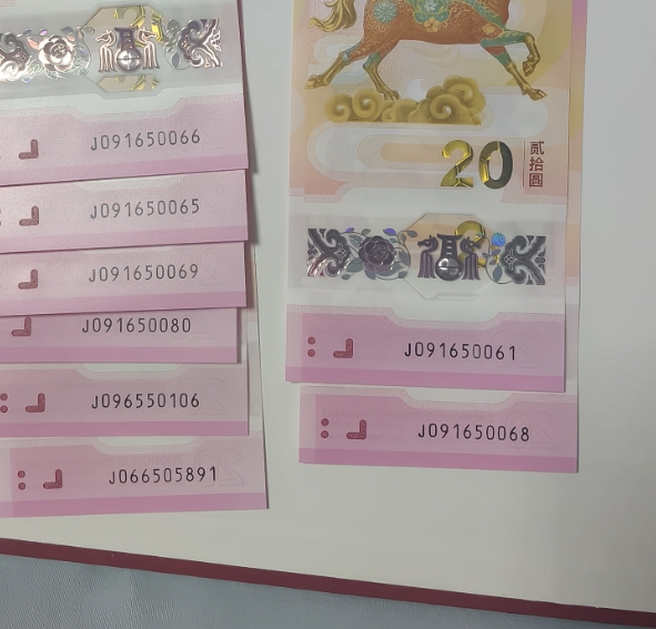 → 260一张出金马号马钞,含一张尾8的