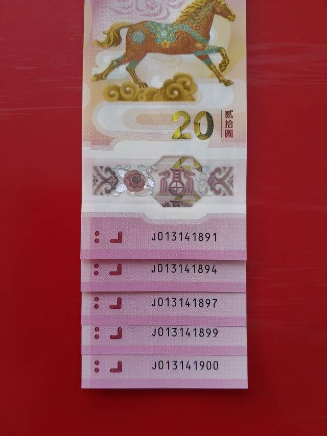 马钞1314头倒置小连号五张