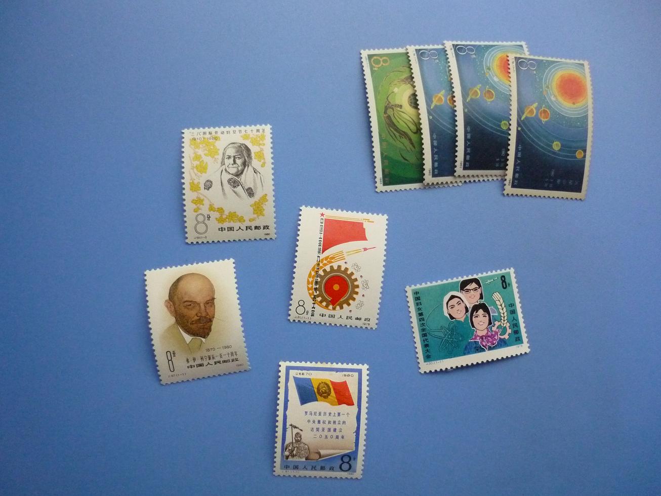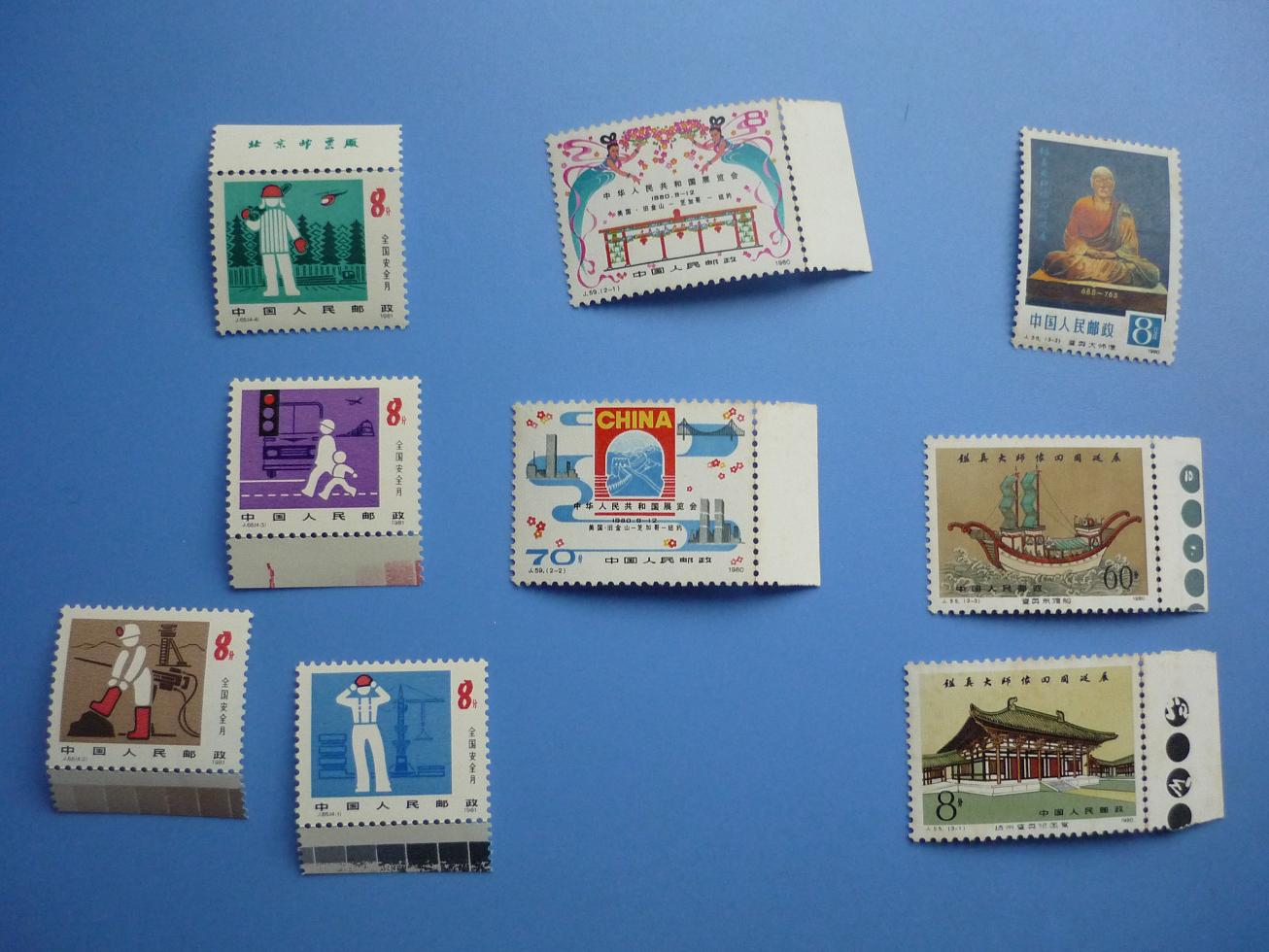 小旗30,郭沫若近全品4,干校近全品75,建军116,戒烟34,安全月近全品,带色标的齿间折,无裁,带厂名的疑似裁,齿间折26,鉴真黄稍明显,带色标的齿间折70,中美边折,黄稍明显31