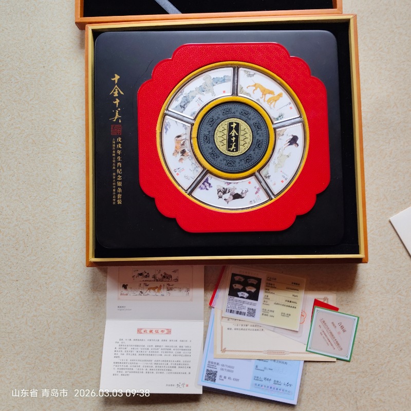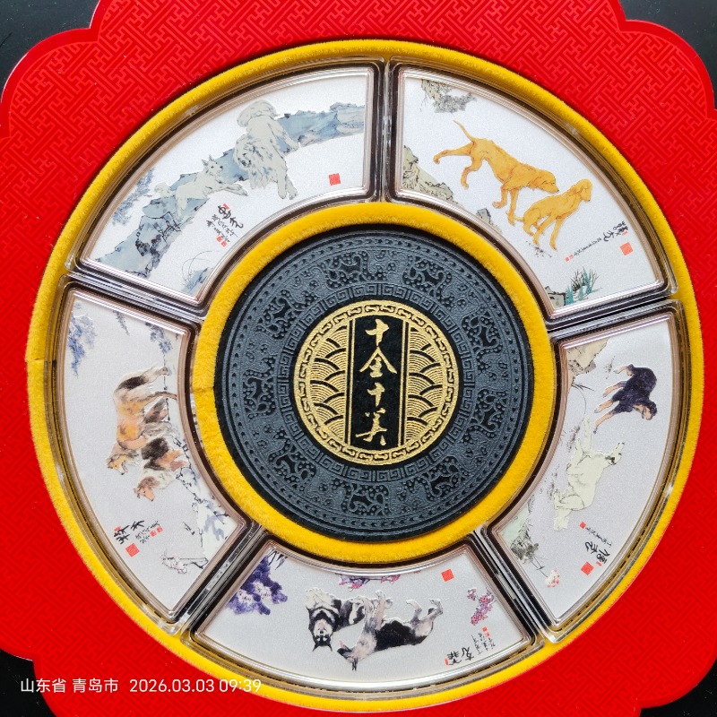 狗年十全十美十犬图150克银币+和田玉纪念银章