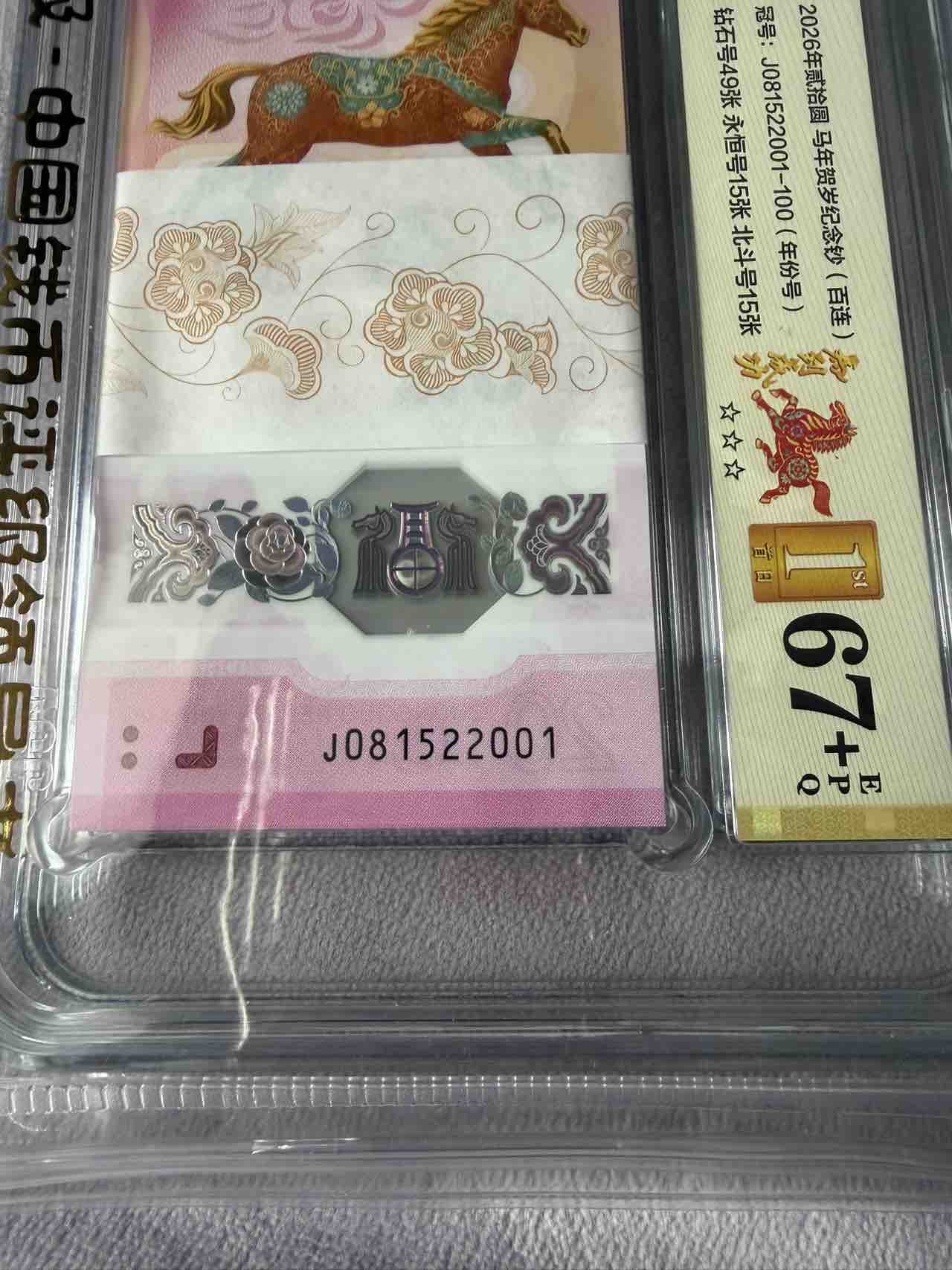 出一刀马钞2001年份刀,081522001,爱藏67+,11000三包到手