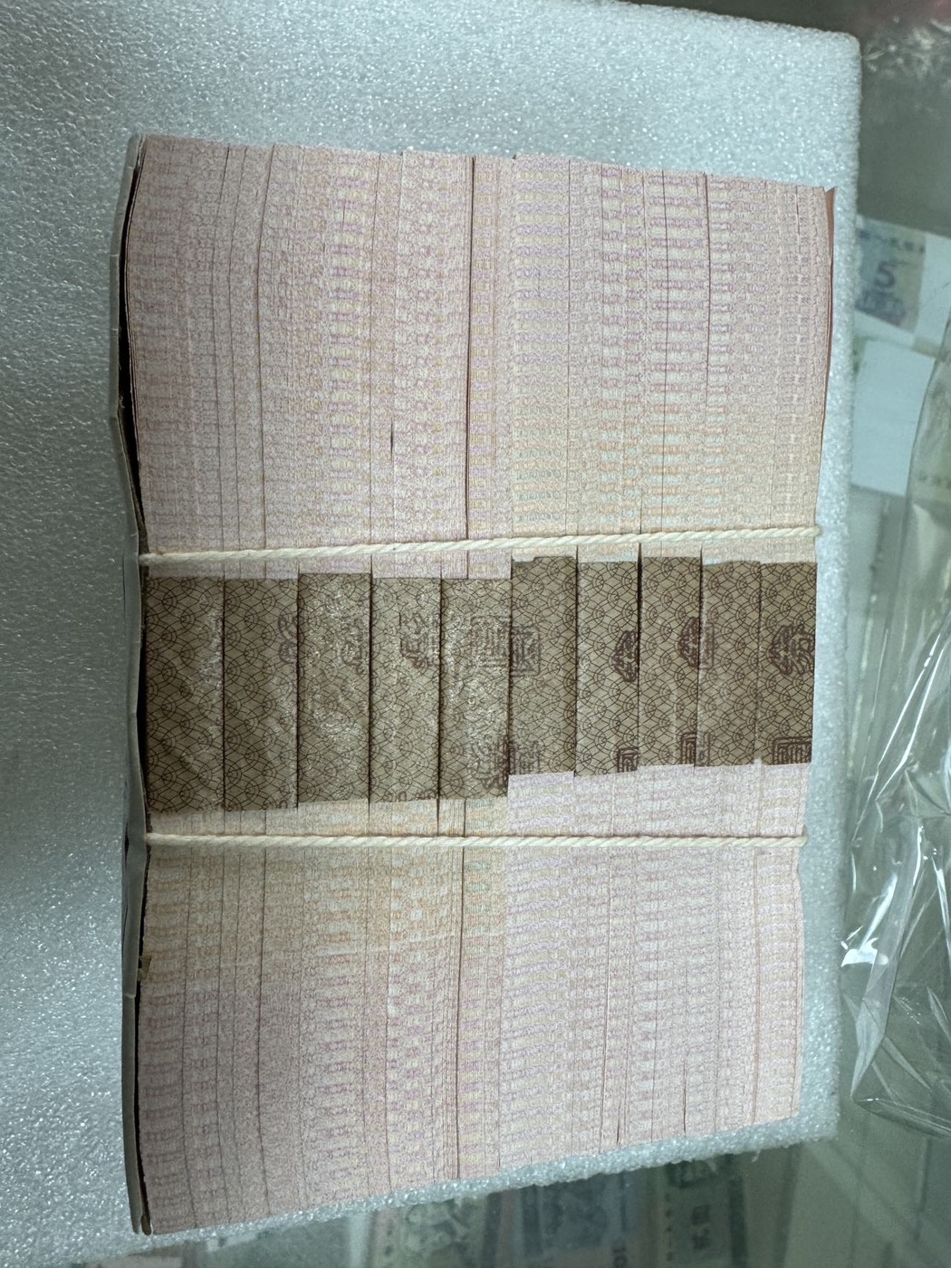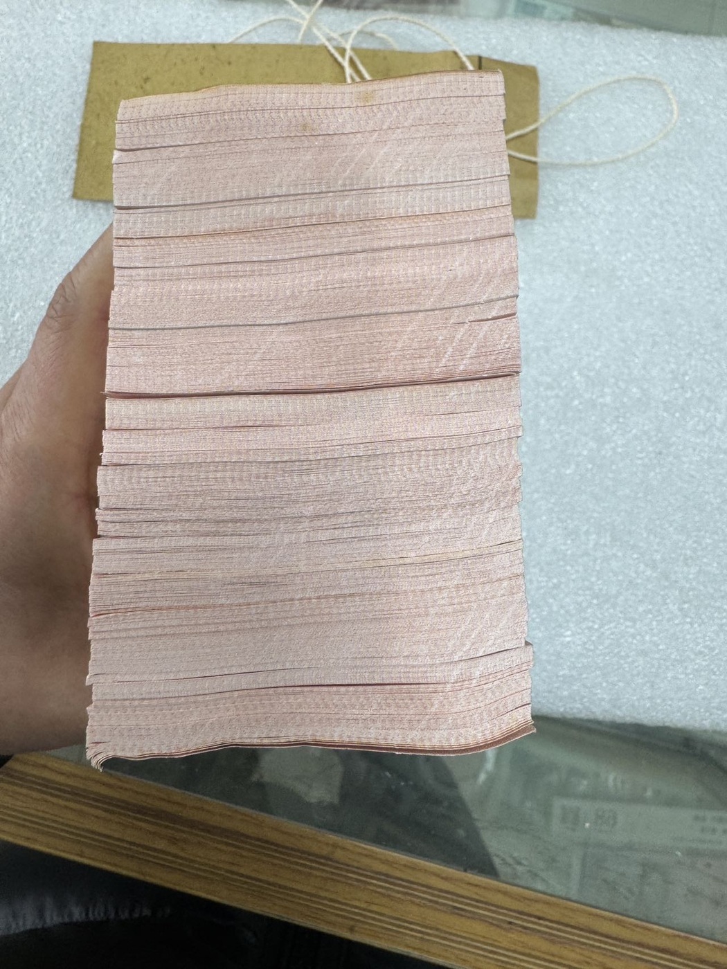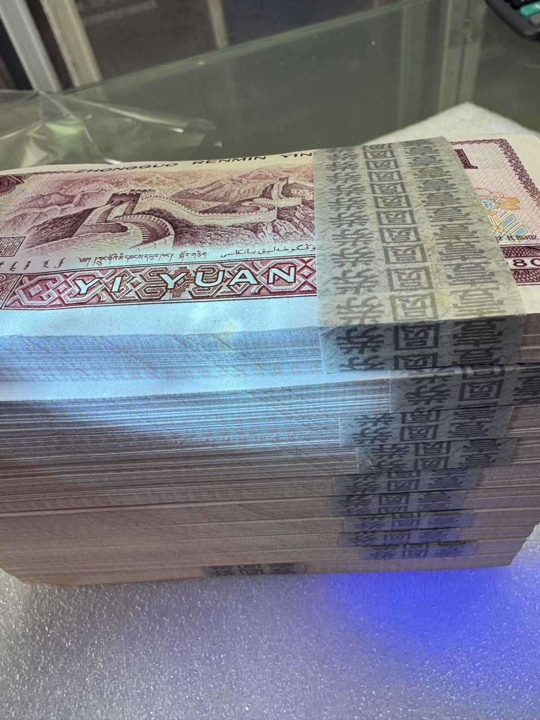 第一捆千连第一刀和最后一刀灯下有个白斑微油点。