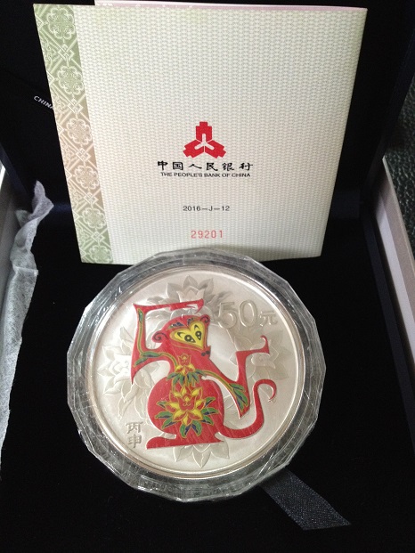 2016五盎司彩银猴 证书无347 原盒原证 4560/枚
