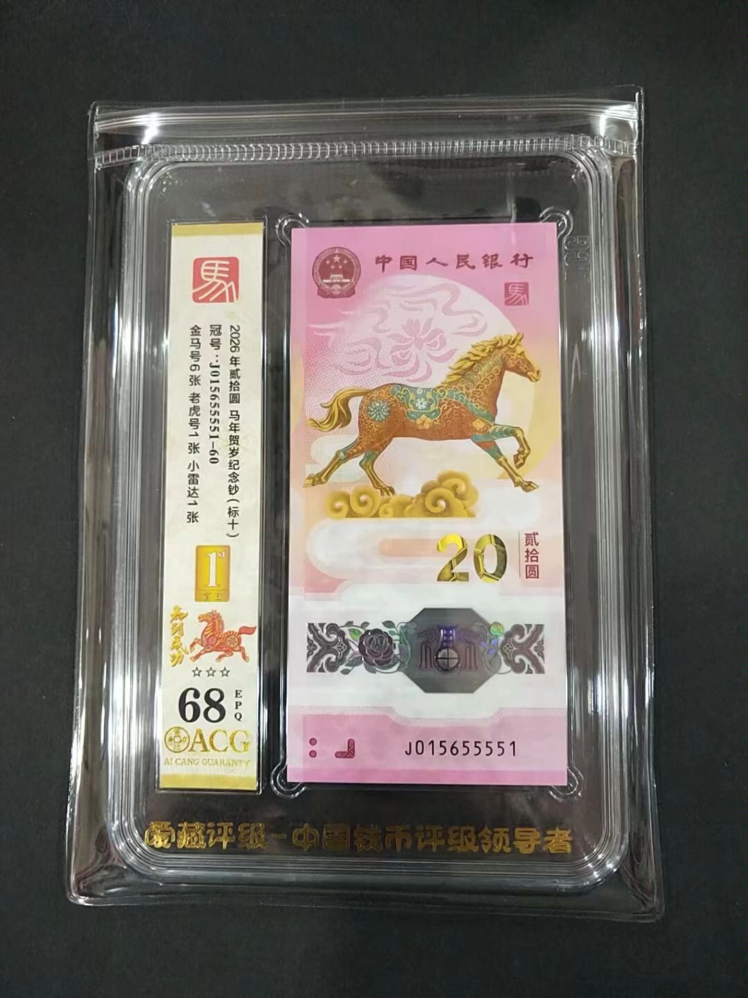 马钞金马0156组合,爱藏首日68。金马55555标十,含9张万马奔腾。16800包快