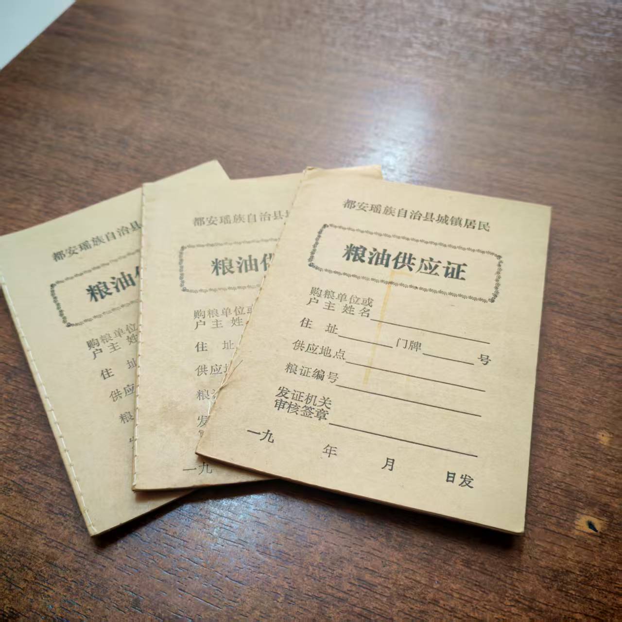 都安瑶族自治县城镇居民粮油供应证 三本 硬壳外皮34页 全新