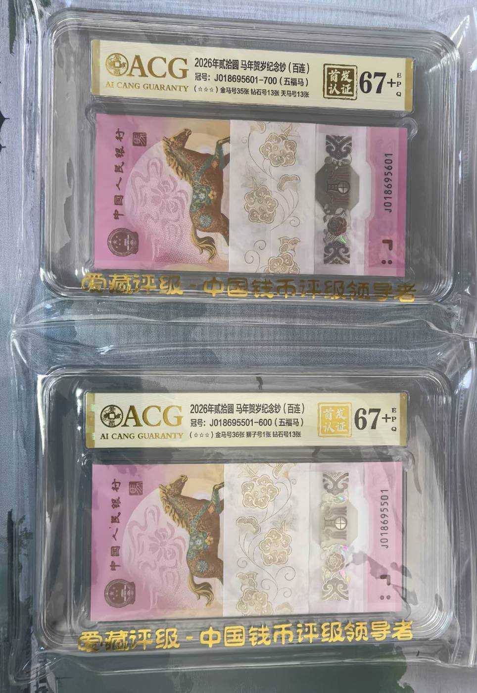 出4个马钞金马评级标百有五福马和68分等